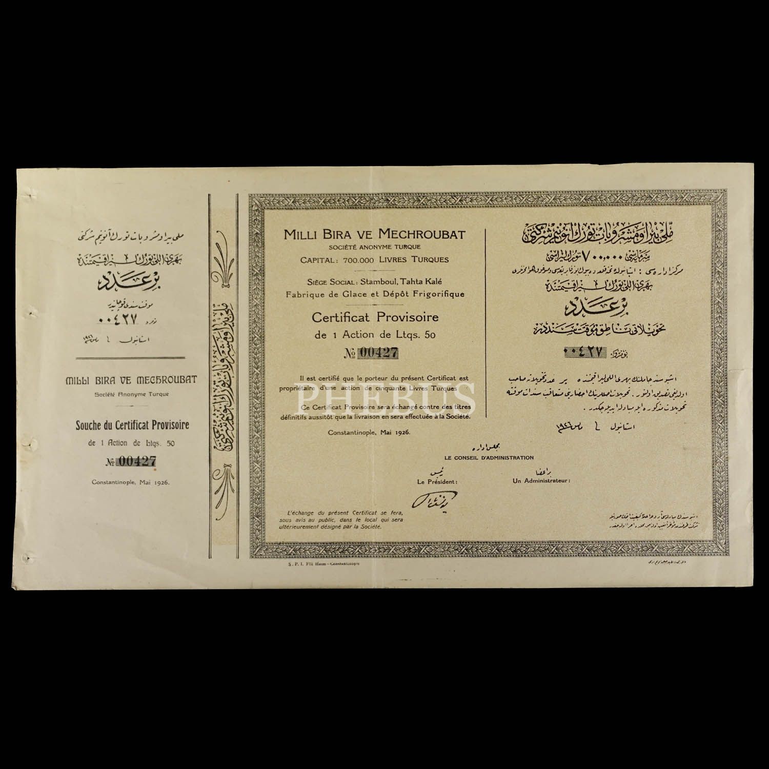 Milli Bira Meşrubat Türk Anonim Şirketi hisse senedi, 41x24 cm...