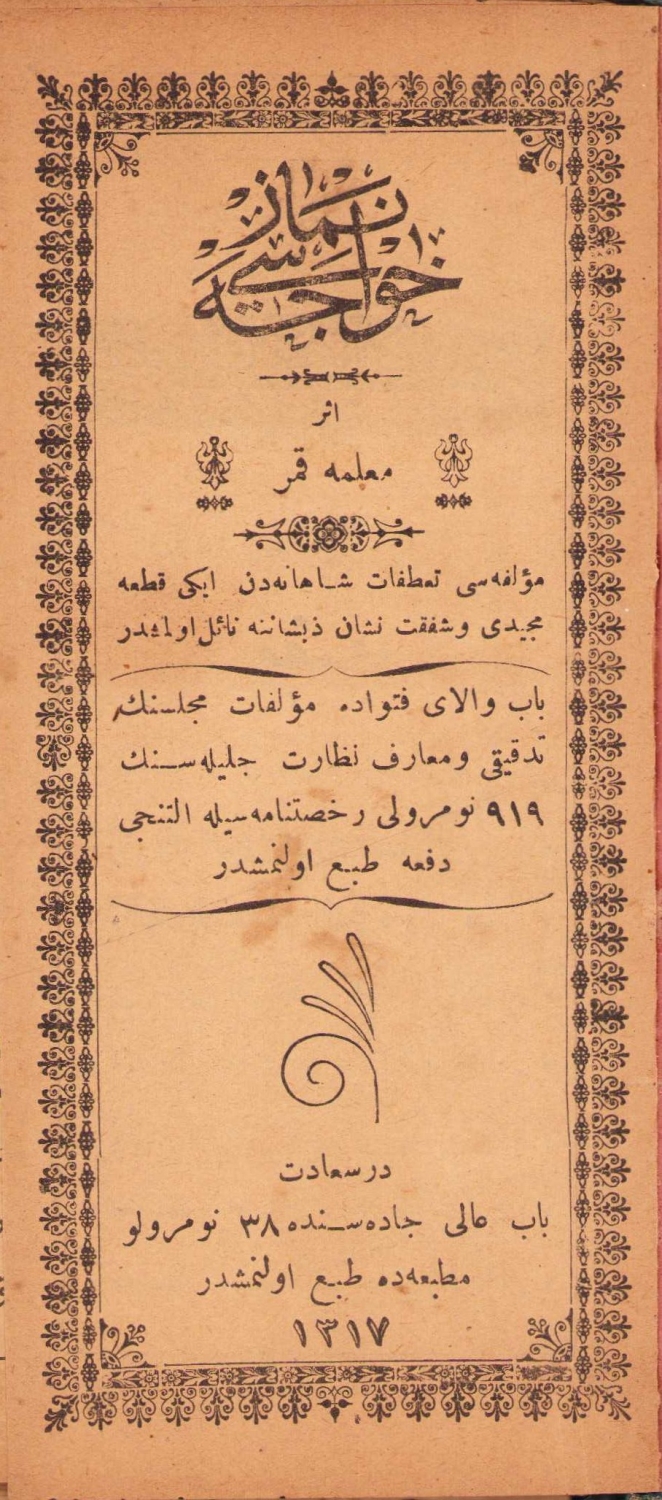 Osmanlıca Namaz Hocası, Muallim Kamer, 38 Numaralı Matbaa, Dersaadet, 1317, cilt kapağı haliyle, 96 sayfa, 8x17 cm, ÖZEGE; 15112