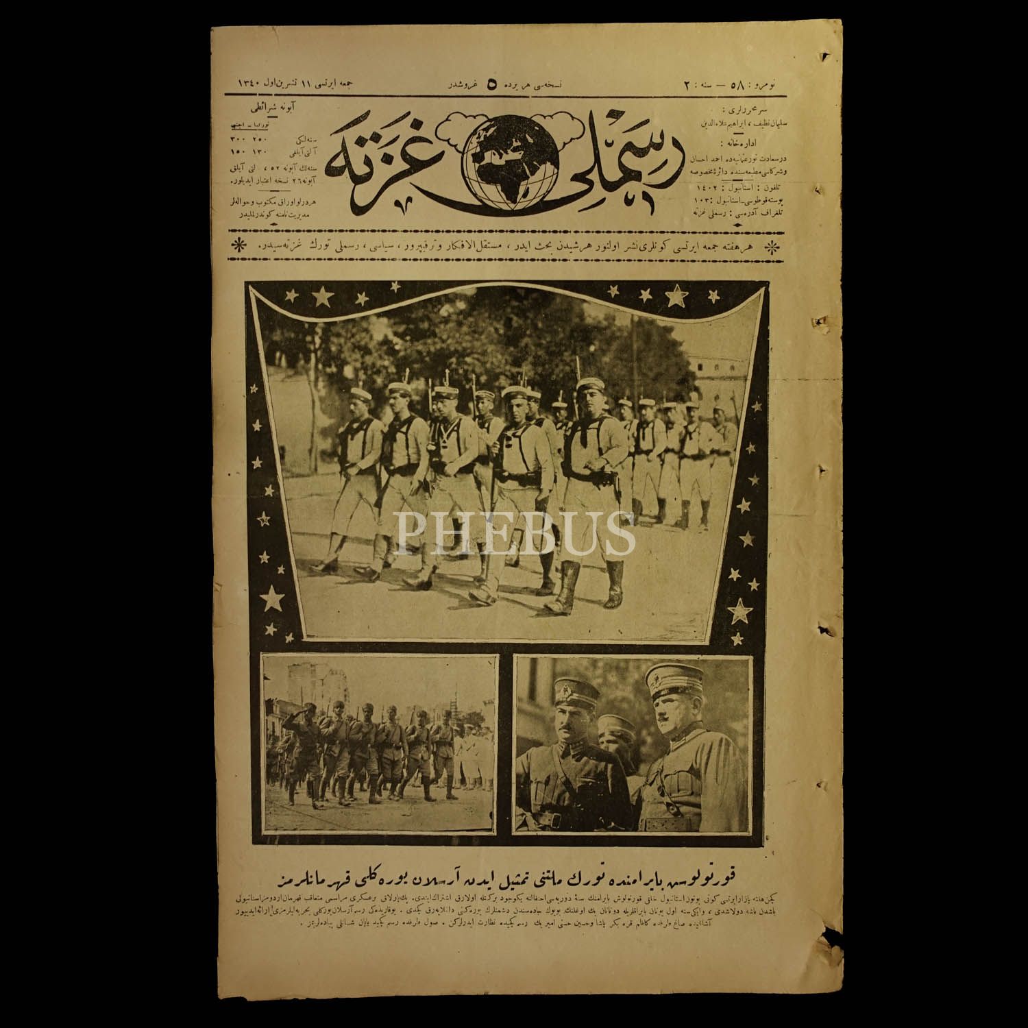"Kurtuluş Savaşı´nda Türk milletini temsil eden arslan yürekli kahramanlarımız" başlıklı RESİMLİ GAZETE´nin 11 Teşrinievvel 1340 tarihli nüshası, 27x42 cm...