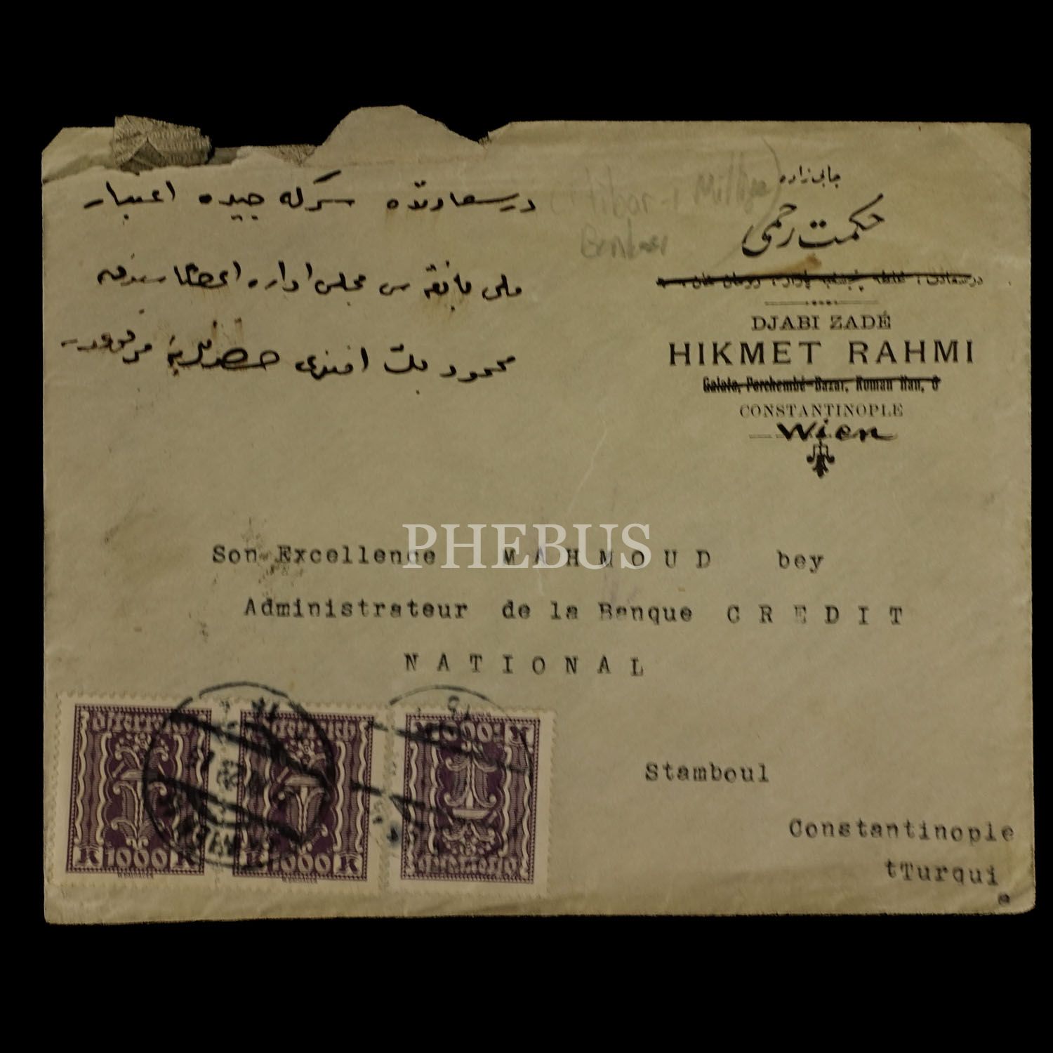 Osmanlıca ve Fransızca antetli dokuz adet mektup zarfı...