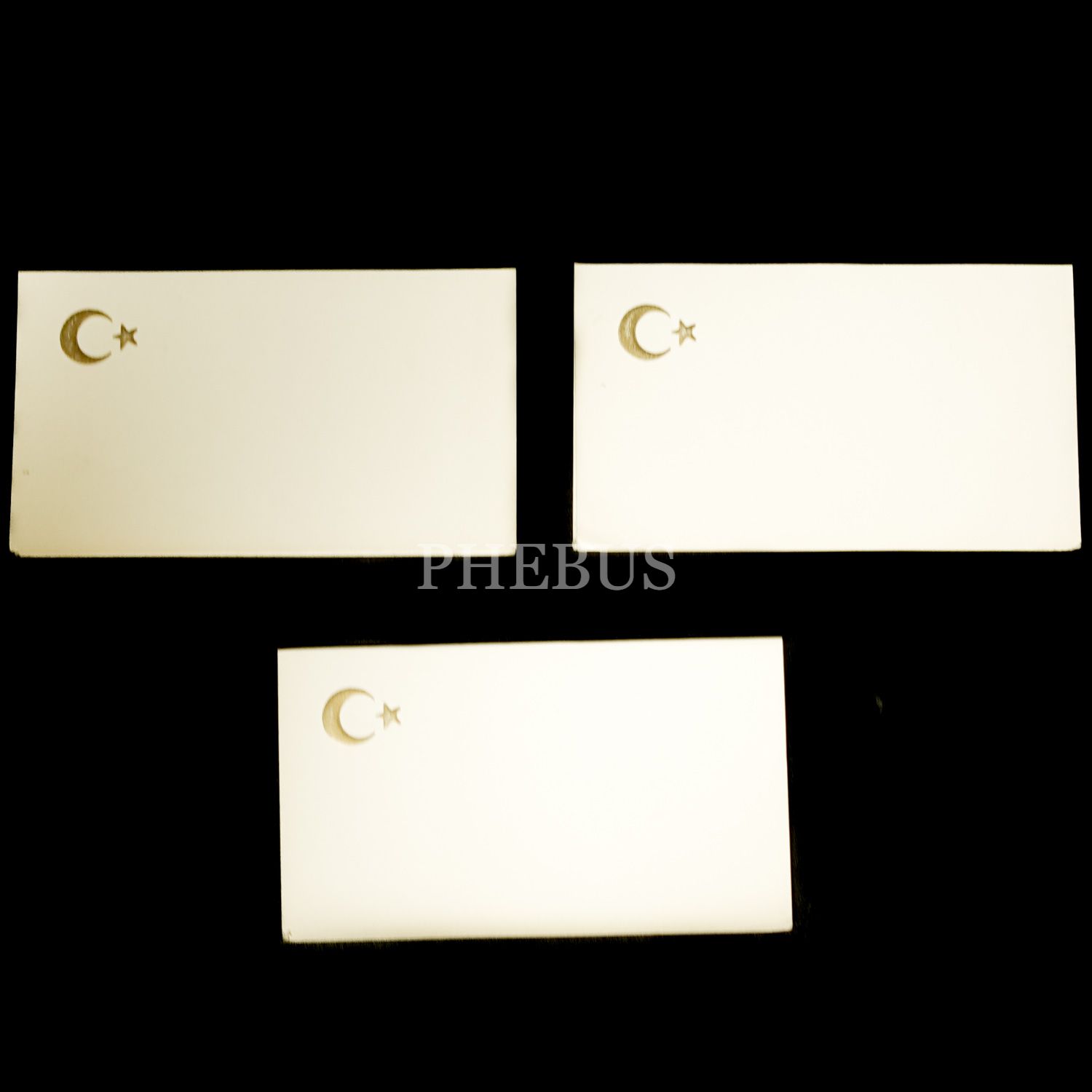 Gofre ay-yıldız görselli üç adet doldurulmamış mektup kartı, 12x7 cm...