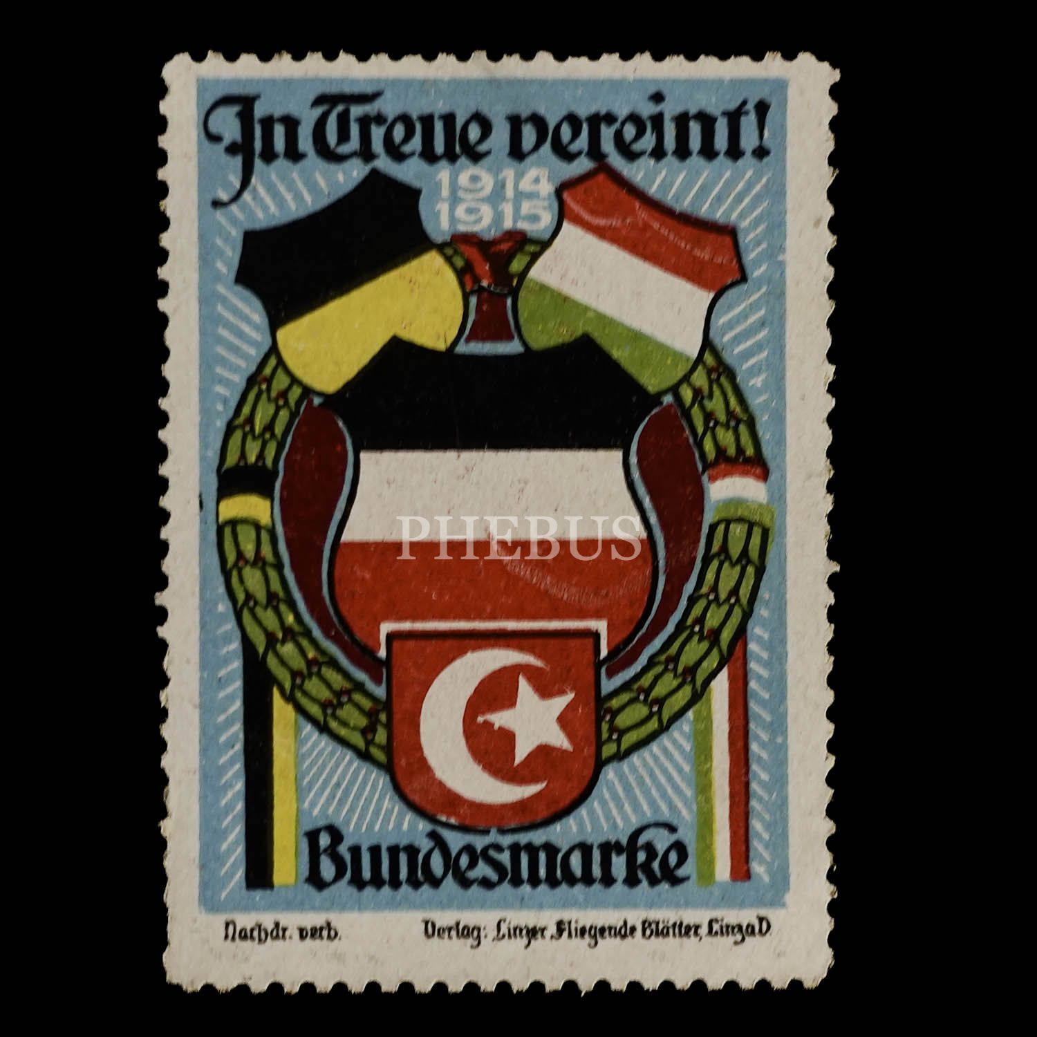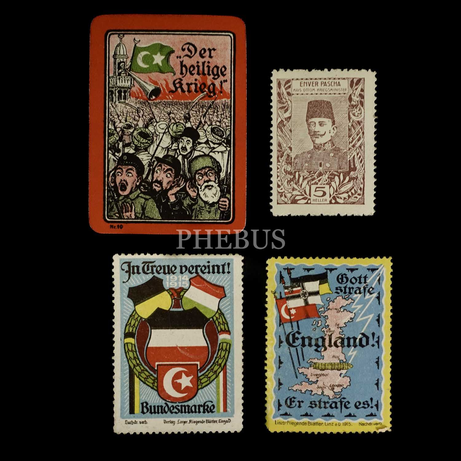 Cihan Harbi döneminden biri Enver Paşa görselli, toplam 4 adet İttifak pulu, muhtelif ebatlarda...
