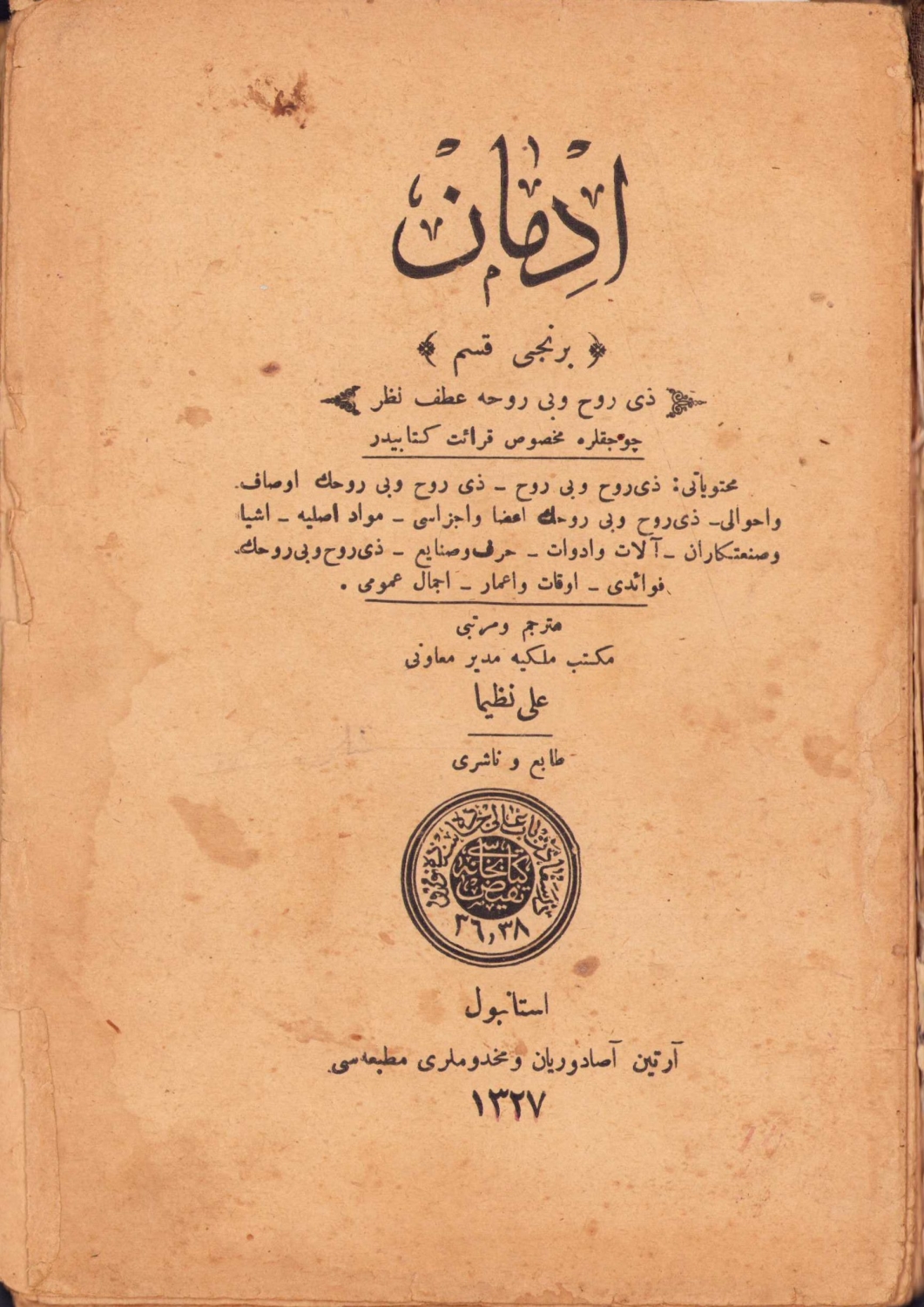 Osmanlıca İdman - birinci kısım, çev., Ali Nazima, Artin Asaduryan Matbaası, 1327, cilt haliyle, 48 sayfa, 14x20 cm