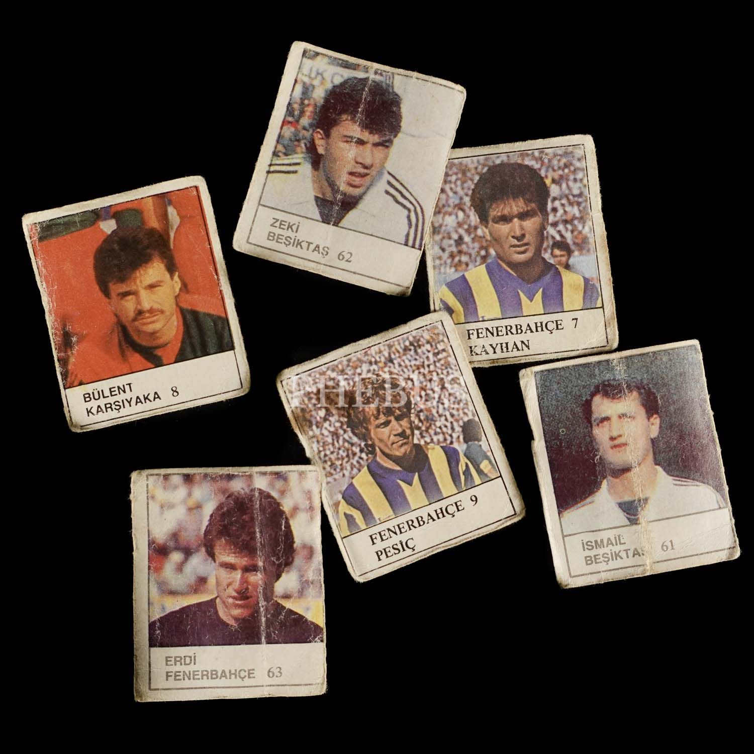 Lot içeriği: 1) Fenerbahçe 7 Kayhan 2) Fenerbahçe 9 Pesiç 3) Fenerbahçe 63 Erdi 4) Beşiktaş 62 Zeki 5) Beşiktaş 61 İsmail 6) Karşıyaka 8 Bülent. *Kartlar yorgun kondisyondadır.