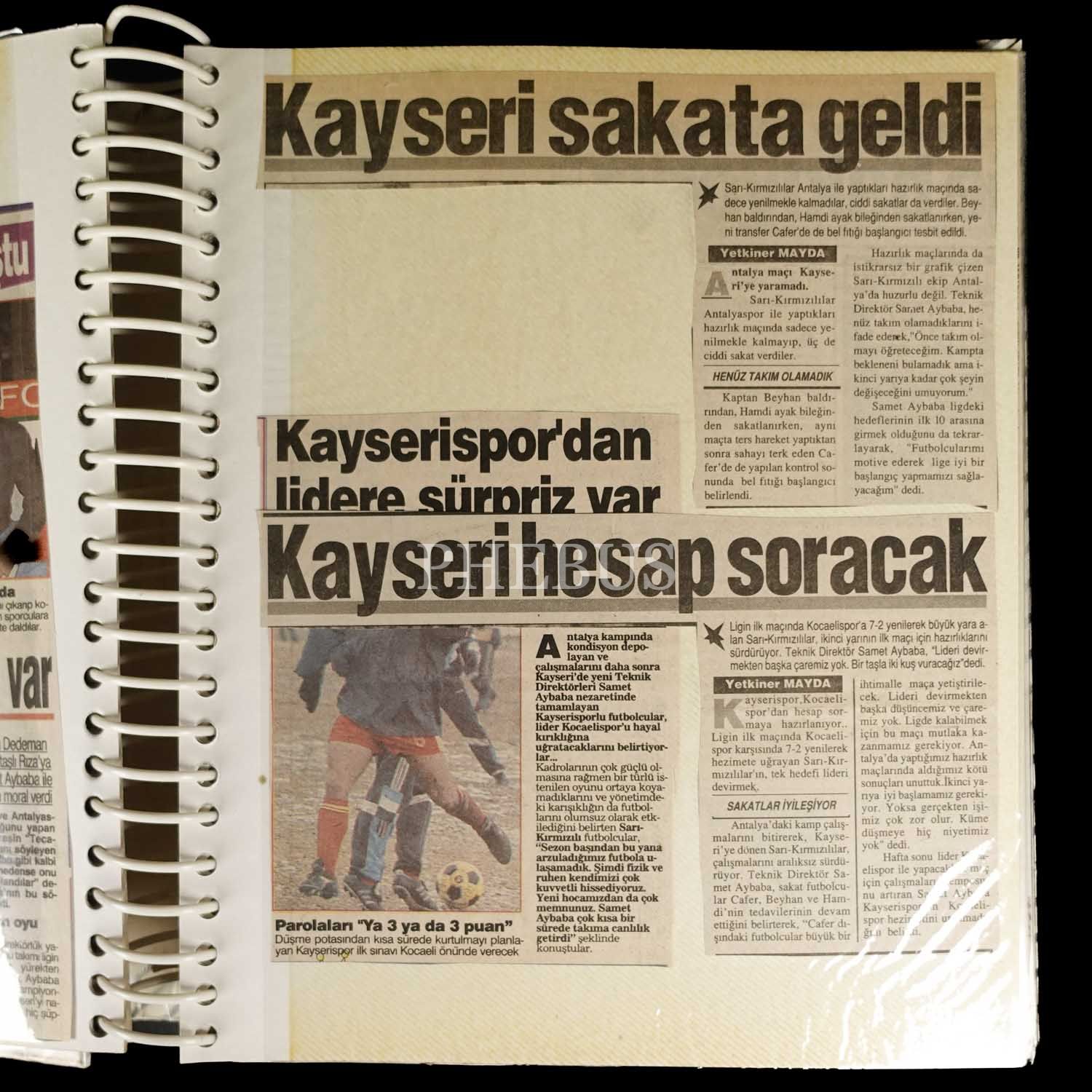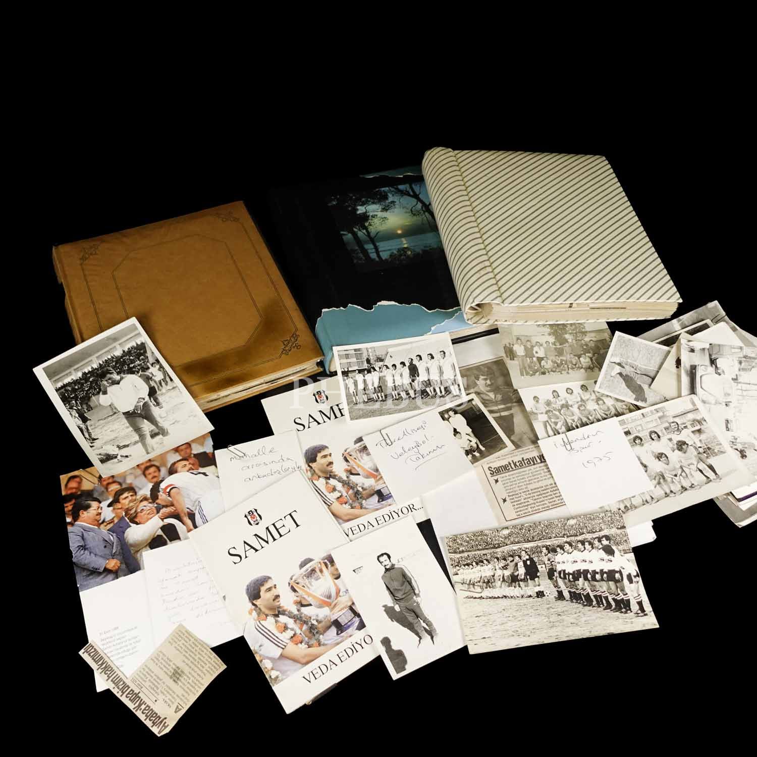 Samet Aybaba hakkında gazetelerde çıkan haberlerin kupürlerinin derlendiği üç klasörlük koleksiyon ve muhtelif ebatlarda 57 adet orijinal fotoğraf...