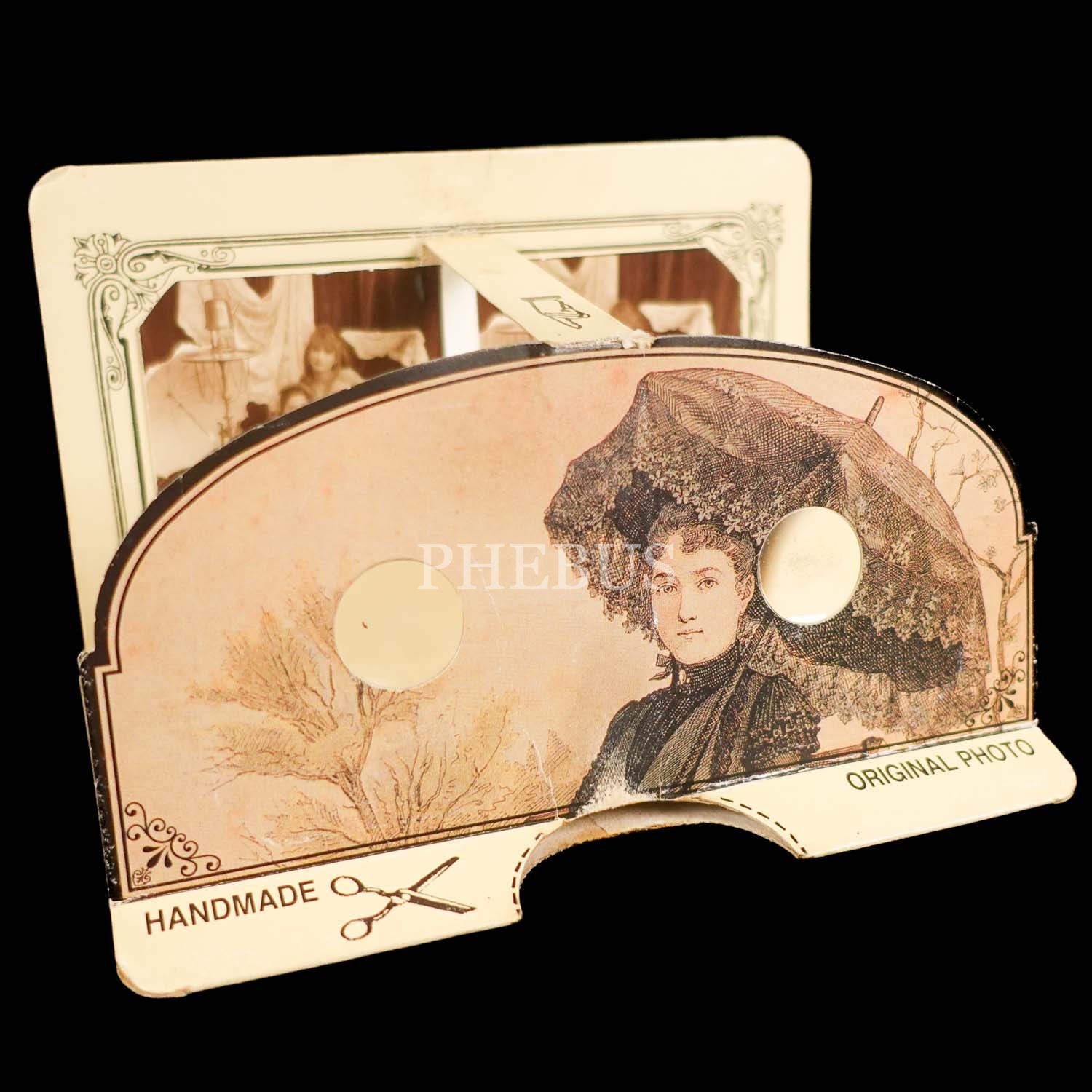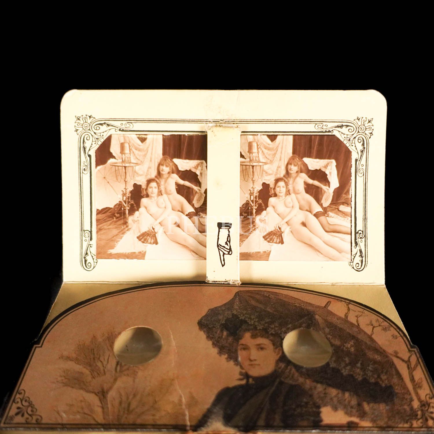 Nü kadınlar görselli, "Handmade Original Photo" ibareli katlanır stereoview kart, 15x10 cm...