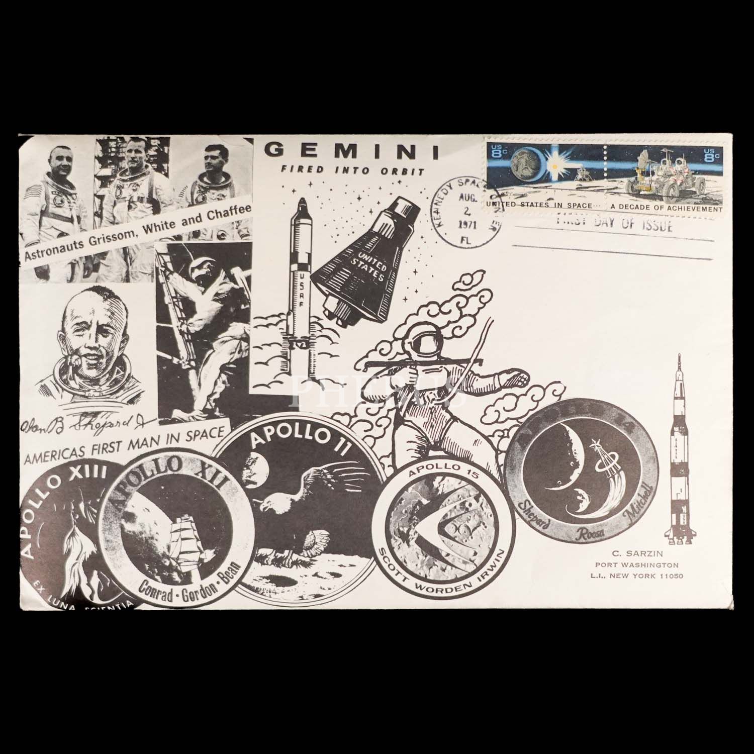 İnsanoğlunun uzay macerası temalı 14 adet ilk gün zarfı, ortalama 17x10 cm...
