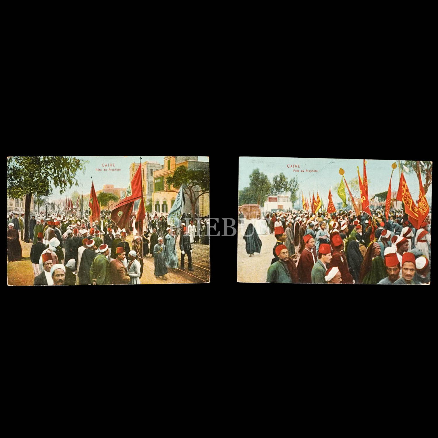 Surre-i Hümâyûn Alayı´nın Kahire´den geçişini gösteren iki adet kartpostal, 14x9 cm...
