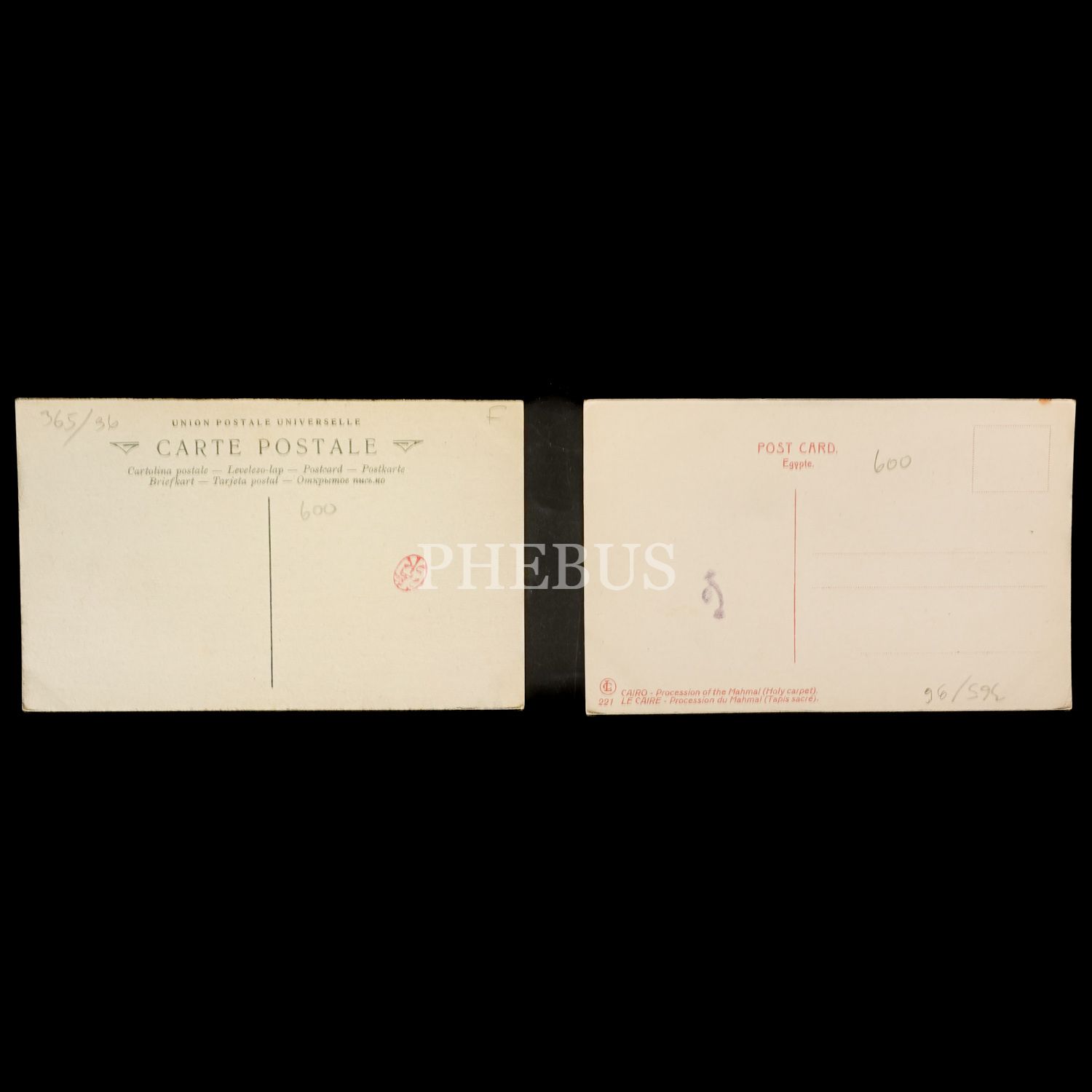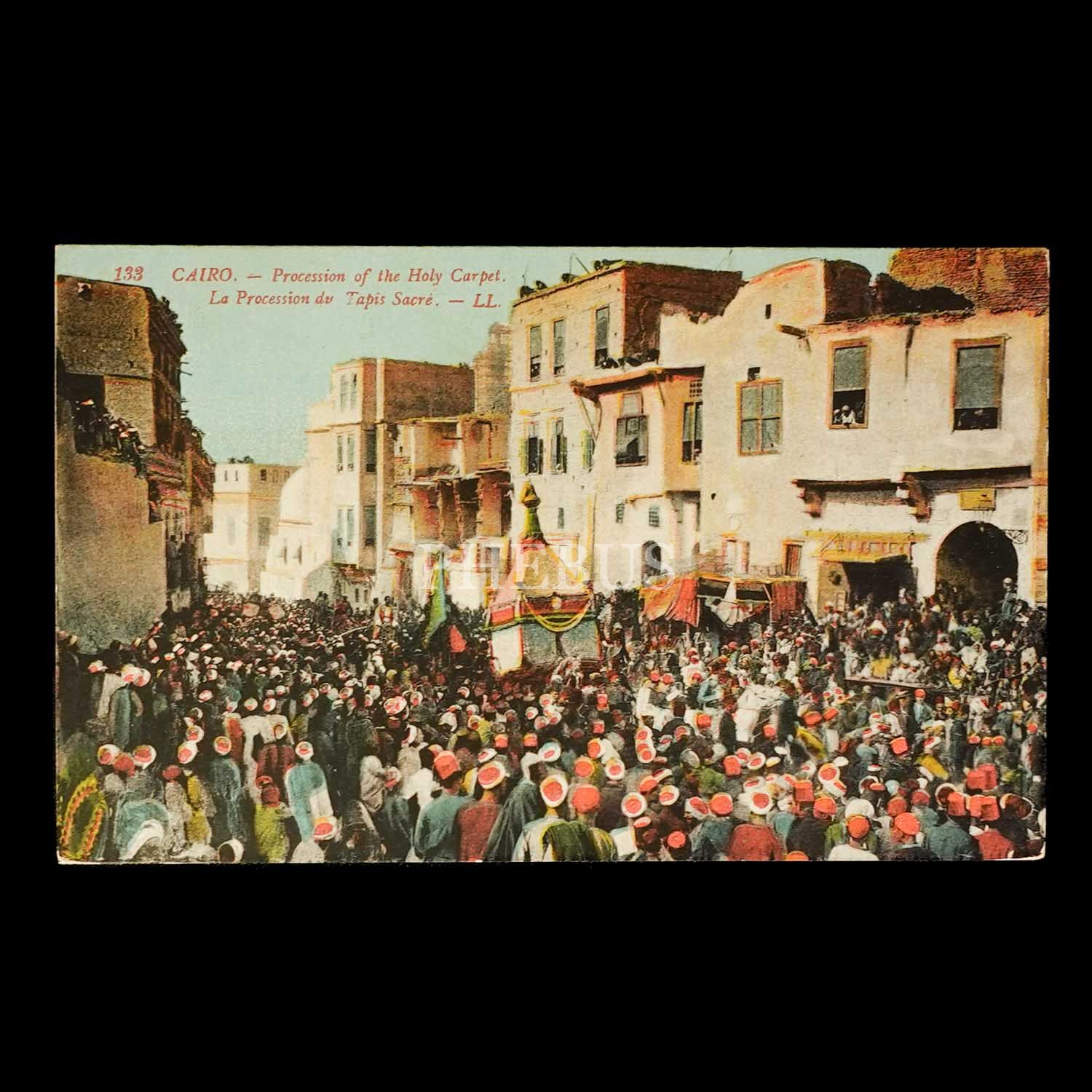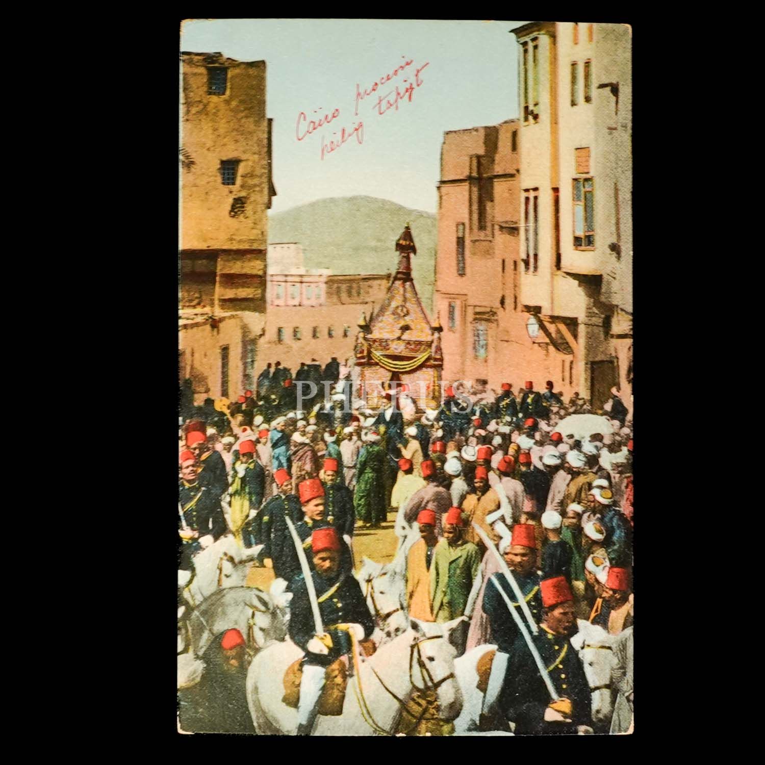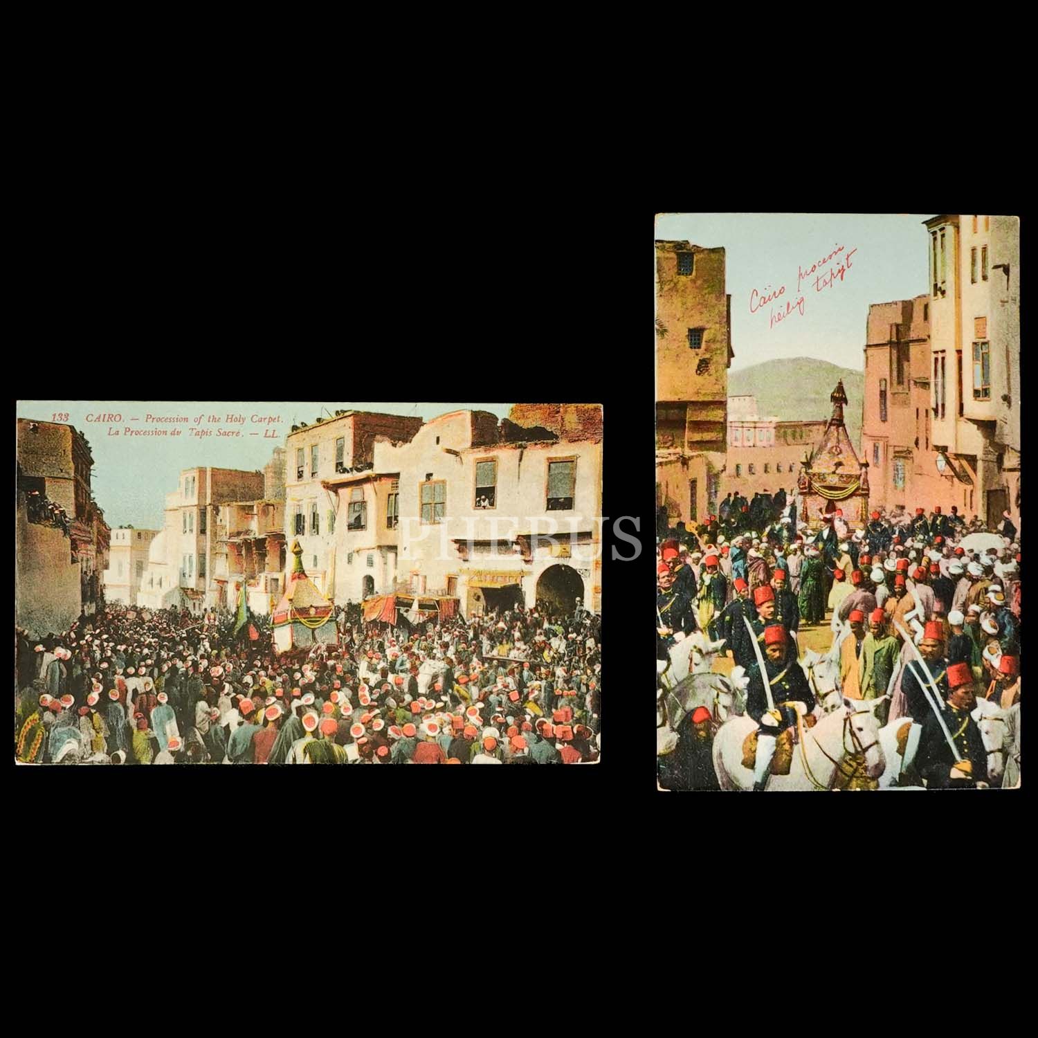 Surre-i Hümâyûn Alayı´nın Kahire´den geçişini gösteren iki adet renklendirilmiş kartpostal, 14x9 cm...