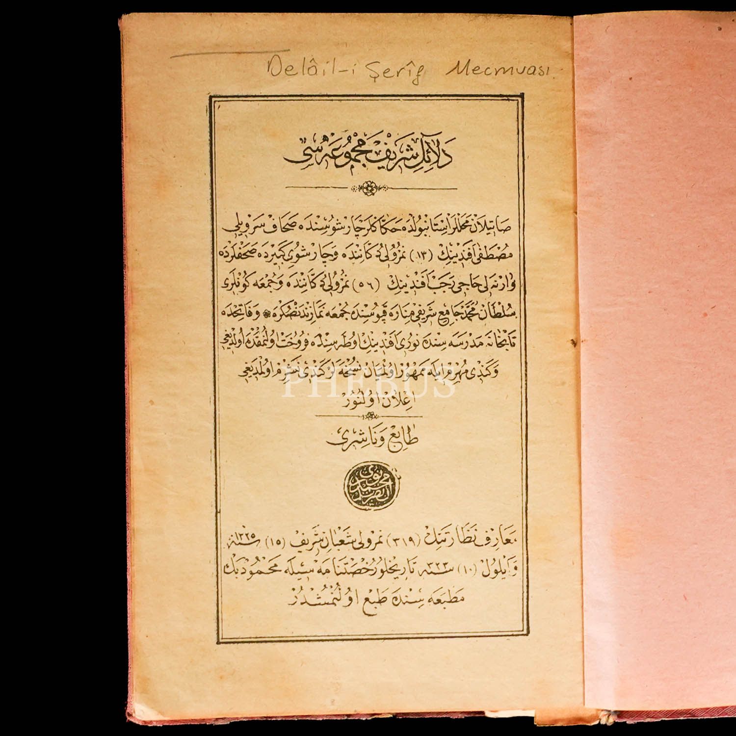 DELAİL-İ ŞERİF MECMUASI, Hattat Osman Nuri hattından taşbaskı, 1326, 287 sayfa, 20x14 cm...