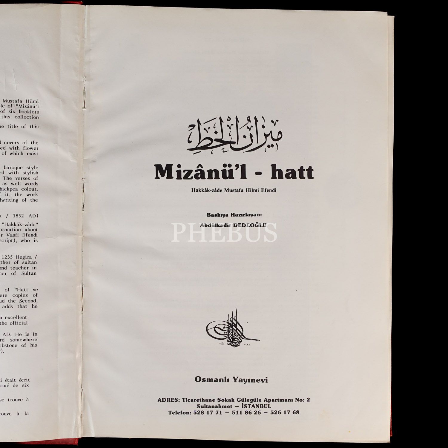 MİZANÜ´L HATT, Hakkakzade Mustafa Hilmi Efendi, (Hazırlayan: Abdülkadir Dedeoğlu), 1986, Osmanlı Yayınevi, 150 sayfa, 34x24 cm...