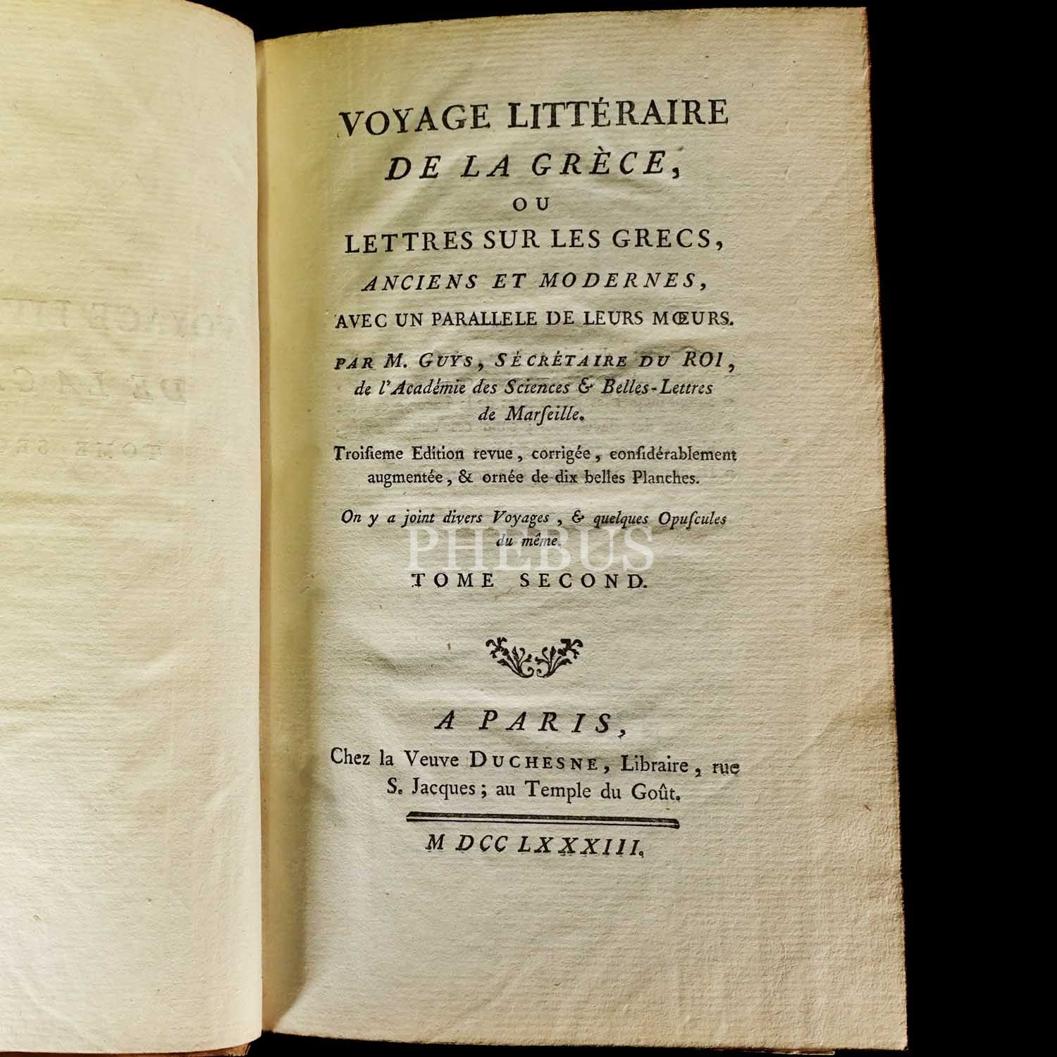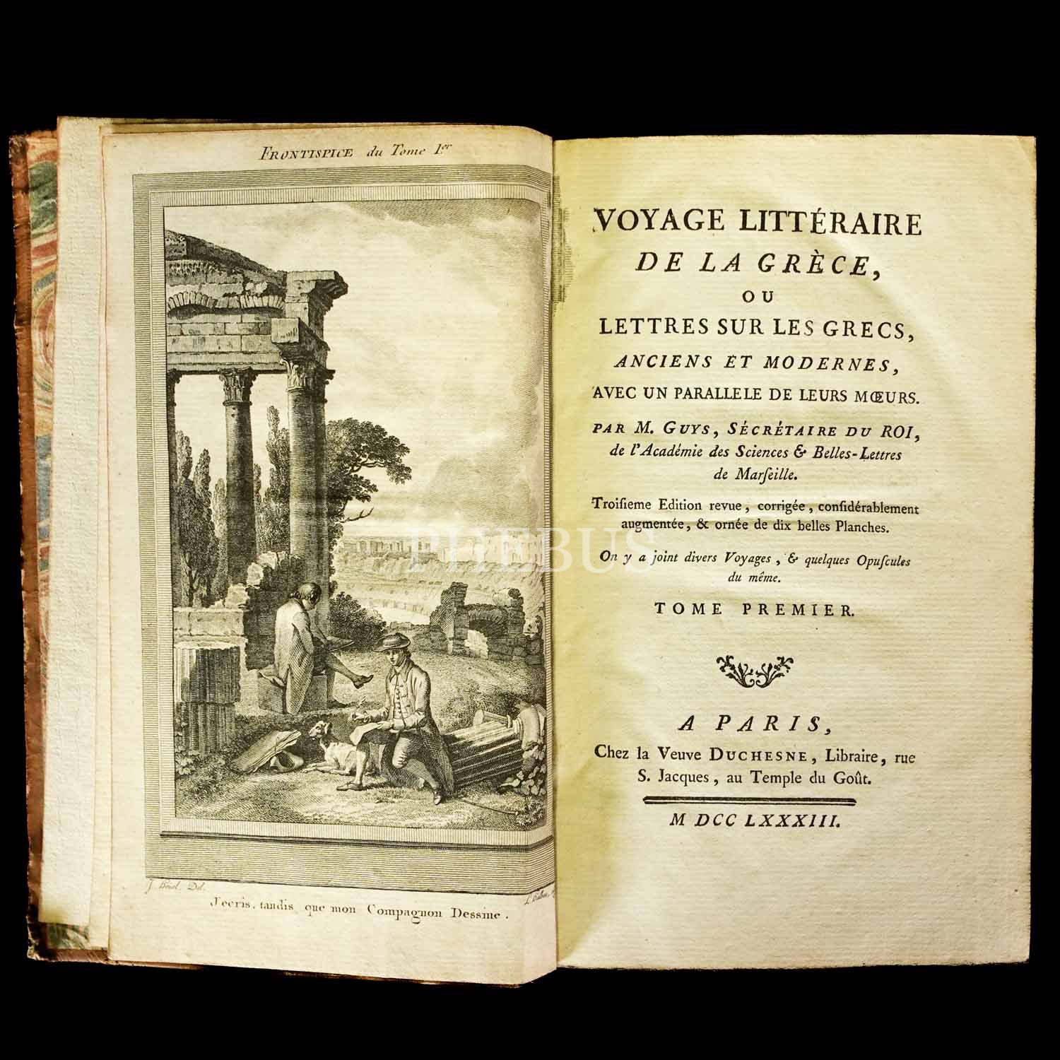 VOYAGE LITTERAIRE DE LA GRECE, OU LETTRES SUR LES GRECS, ANCIENS ET MODERNES, AVEC UN PARALLELE DE LEURS MOEURS, Pierre-Augustin Beyler, 1783, Chez la Veuve Duchesne, Libraire, 527+382+371+238 sayfa, 13x20 cm...