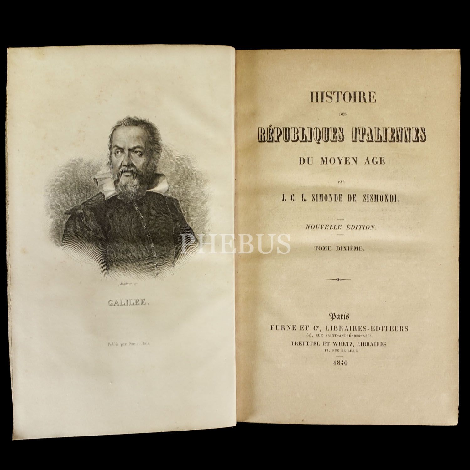 HISTORIE DES REPUBLIQUES ITALIENNES DU MOYEN AGE (9 cilt), J.C.L Simonde De Sismondi, 1840, Furne et Cie., Libraires-Editeurs, Paris, 14x22 cm...