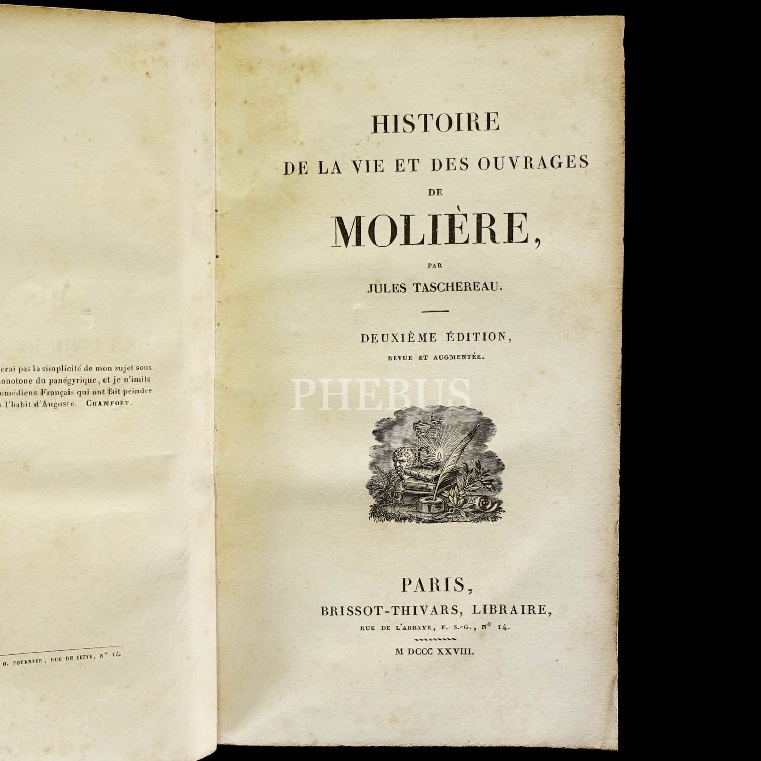 HISTOIRE DE LA VIE ET DES OUVRAGES DE MOLIERE, Jules Taschereau, 1828, Brissot-Thivars, Libraire, Paris, 452 sayfa, 13x21 cm...