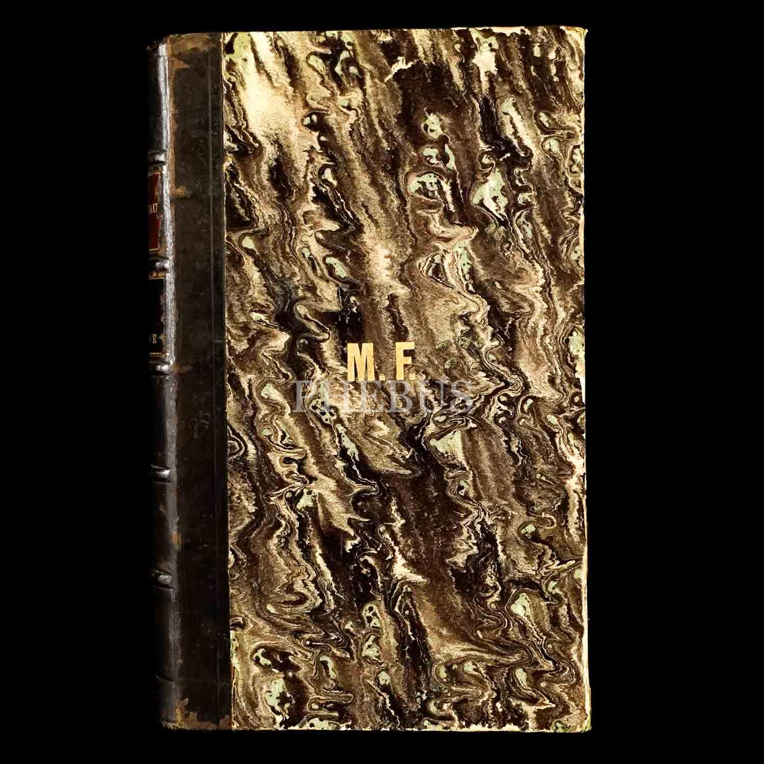 Deri sırtı panelli ve altın yaldız başlıklı, kapakları, iç kapakları ve sayfa kenarları ebru süslemeli dönem cildinde...
