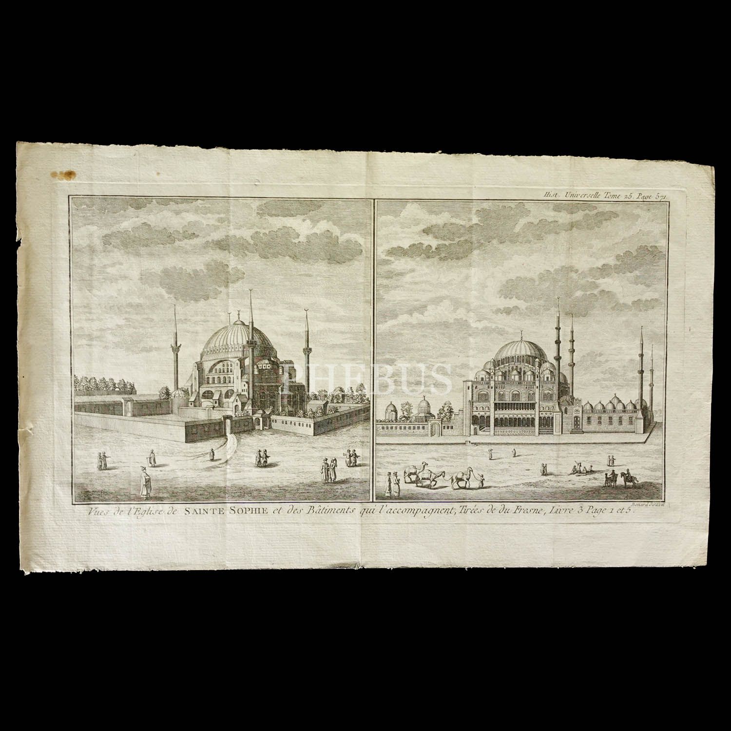 Ayasofya Camii ve ek binaları, "Vues de l´Eglise de Sainte Sophie et des Batiments qui l´accompagnent, Tirees de du Eresne, Livre 3 Page 1 et 5", 35x21 cm...