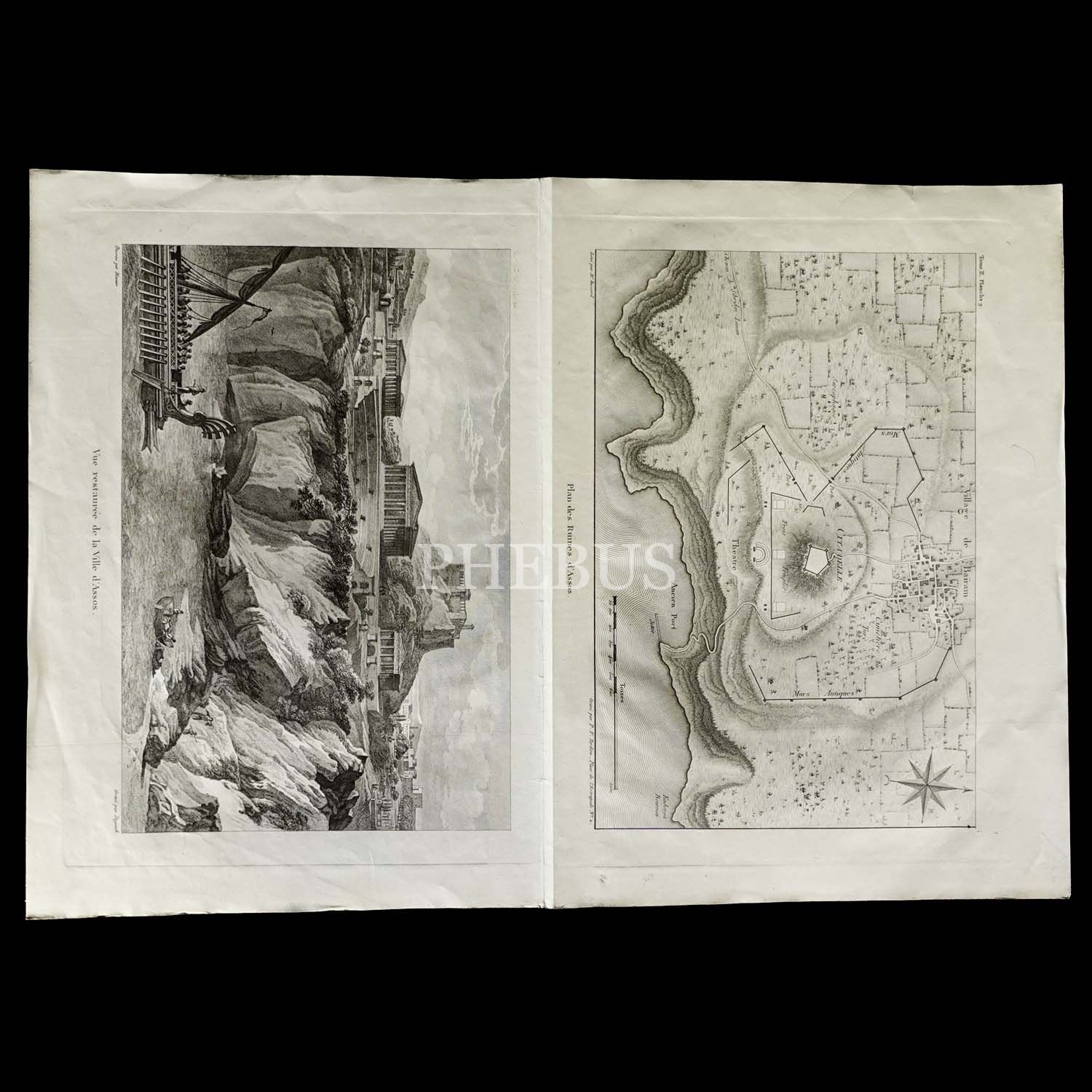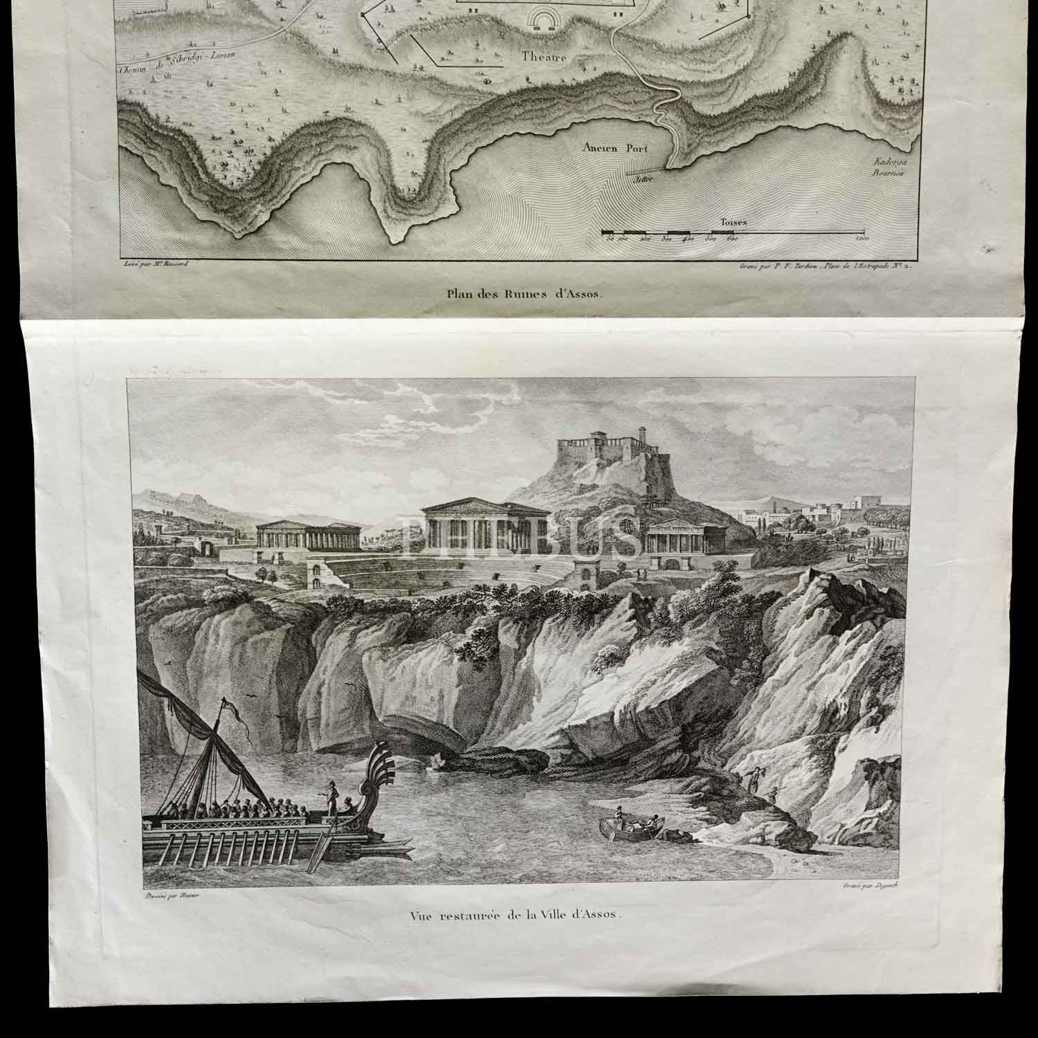 Assos Antik Kenti haritası ve restore edilmiş hayali gravürü, 29x41 cm...
