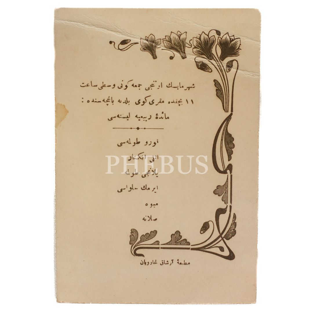 Maide-i Rubaiye Lisesi´nin Makriköy Belediye Bahçesi´nde düzenlediği yemeğin menüsü, 9x13 cm...