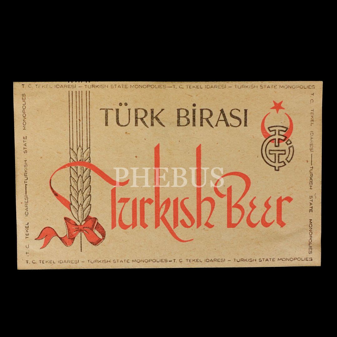 Türkiye Cumhuriyeti Tekel İdaresi tarafından üretilen Türk Birası'na ait orijinal etiket, 10x6 cm...