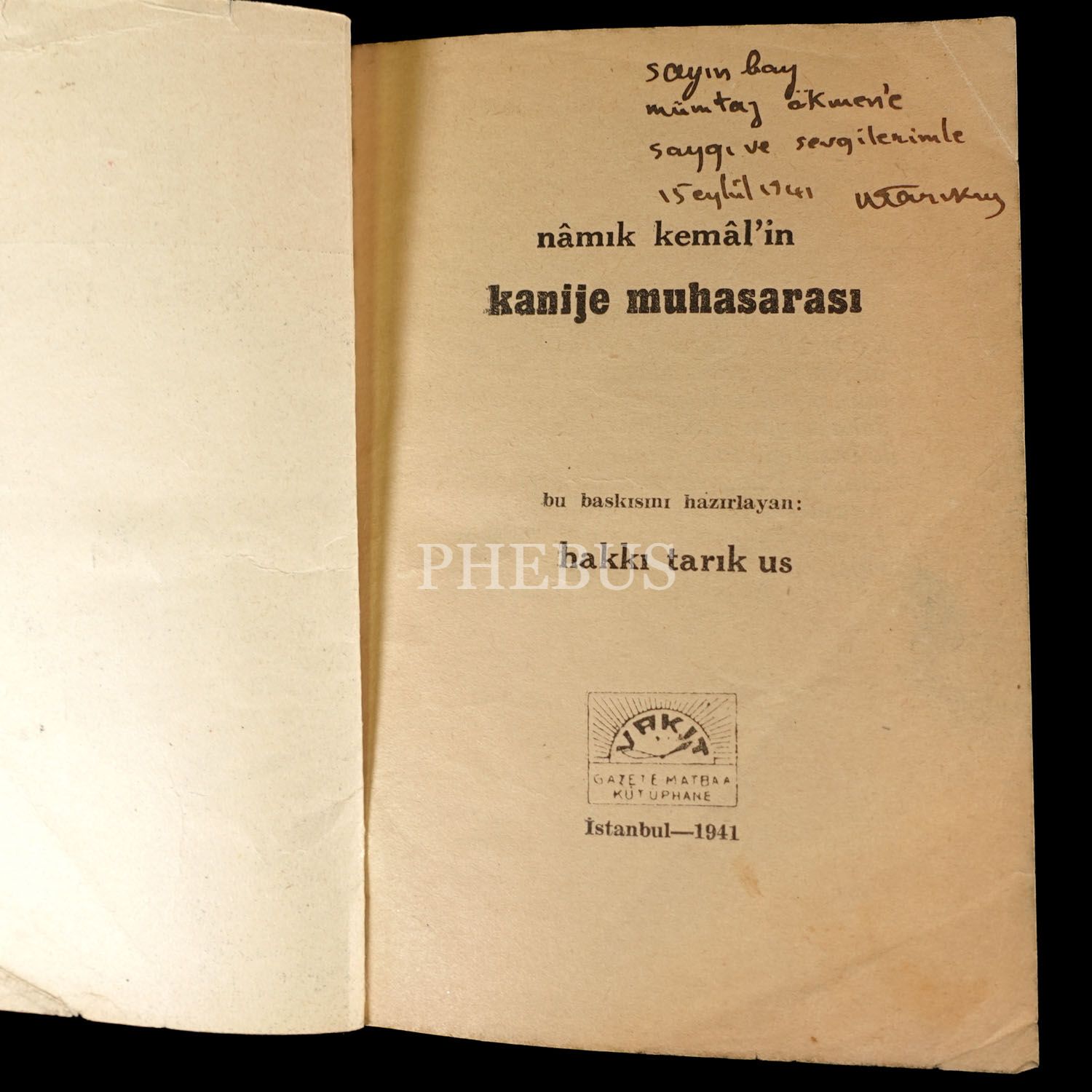 "Sayın Bay Mümtaz Ökmen'e saygı ve sevgilerimle." ithafıyla imzalıdır.