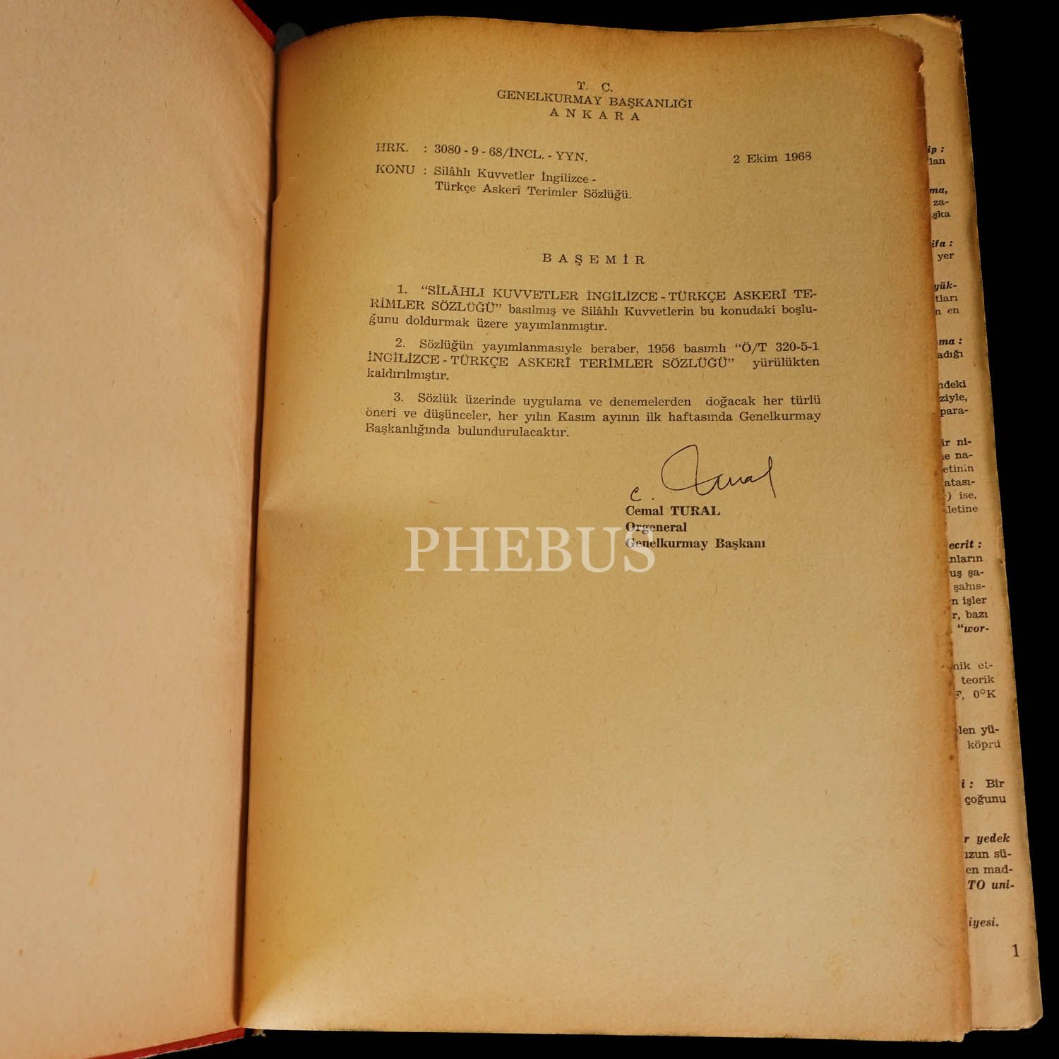 İNGİLİZCE-TÜRKÇE ASKERİ TERİMLER SÖZLÜĞÜ, 1969, Genelkurmay Basımevi, 689 sayfa, 29x20 cm...