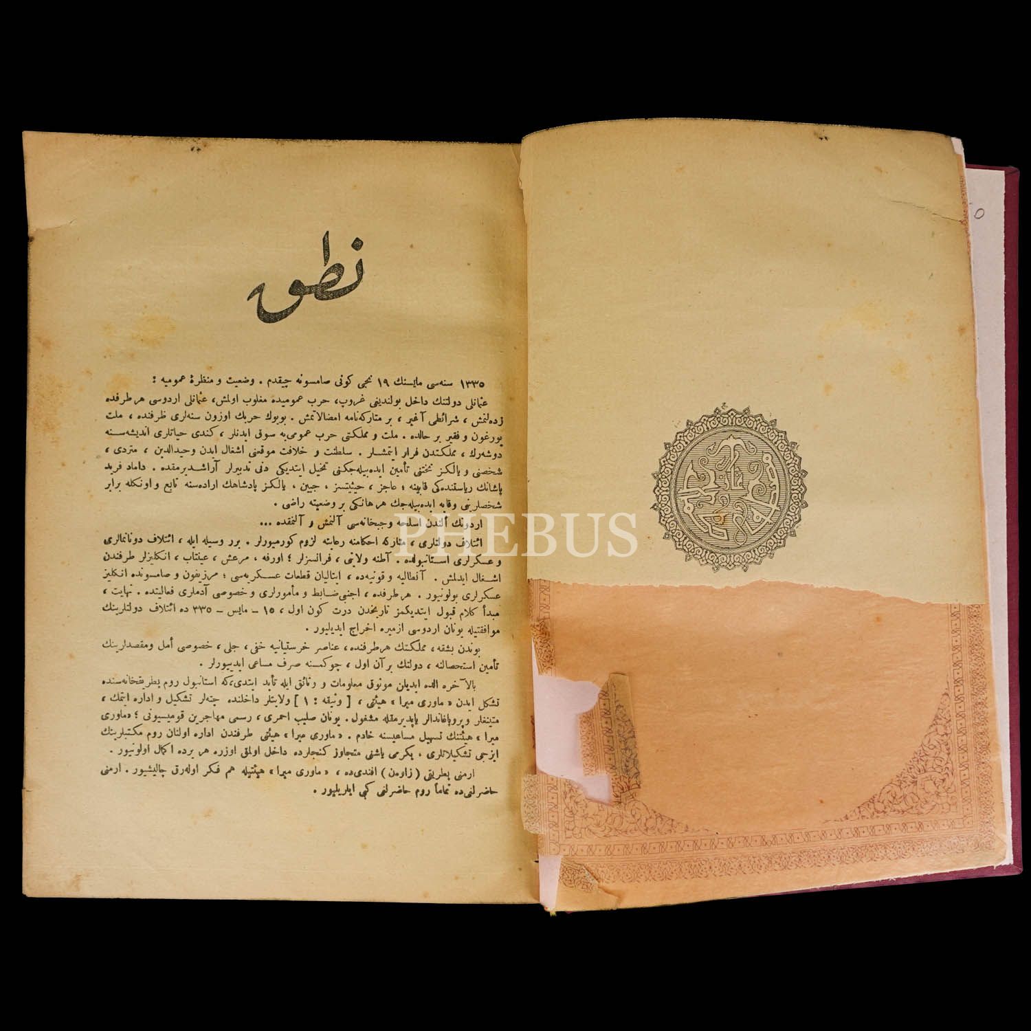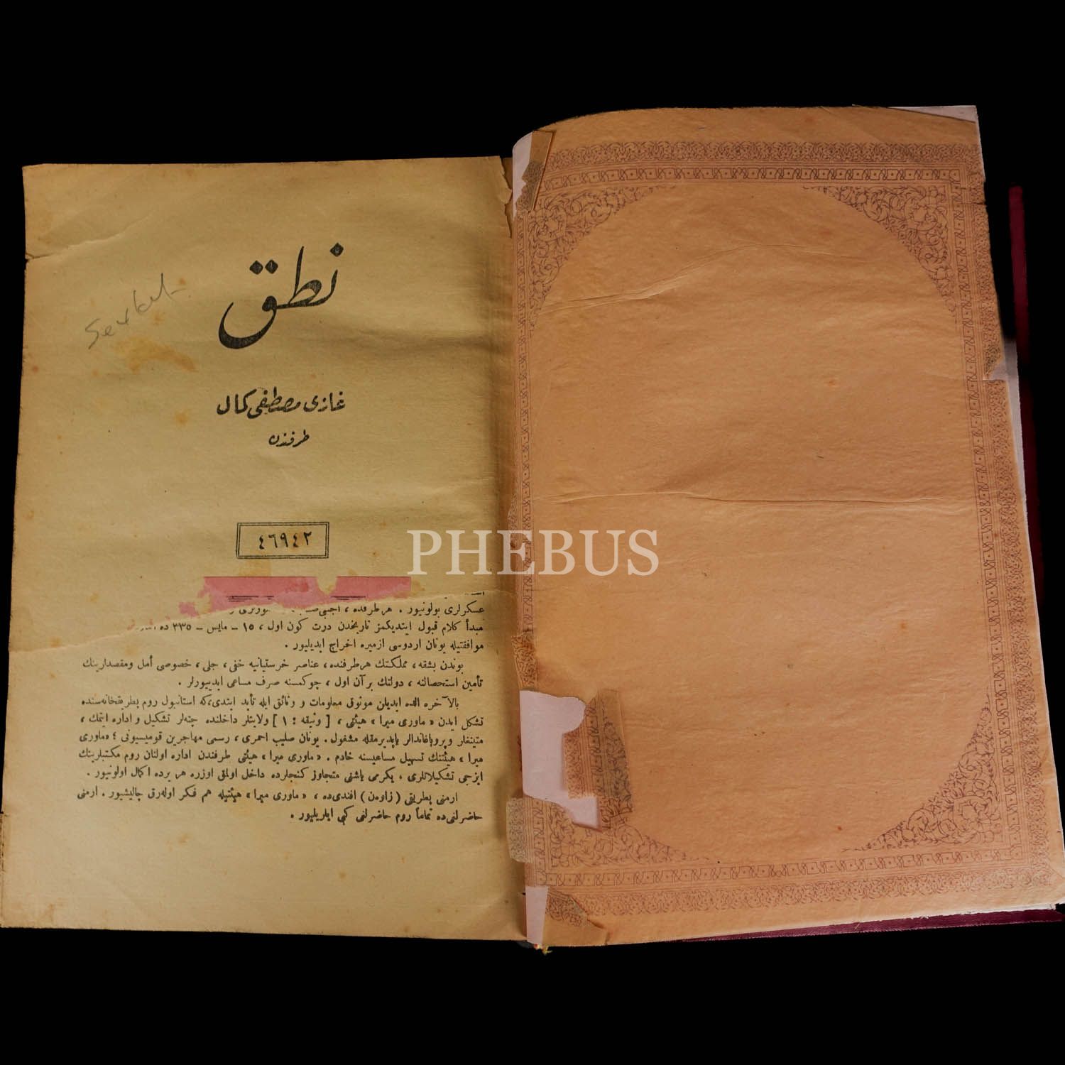 NUTUK, Gazi Mustafa Kemal tarafından, 1927, 47942 numaralı nüsha, künye sayfasının alt kısmı kopuk haliyle, 543 sayfa, 27x19 cm...