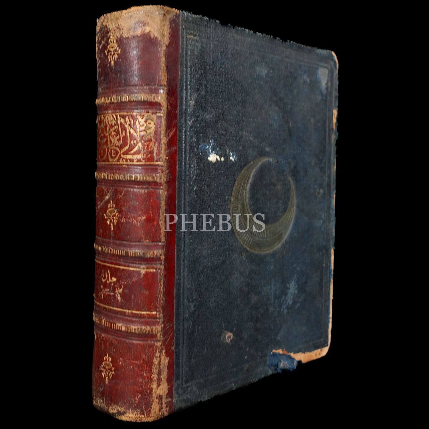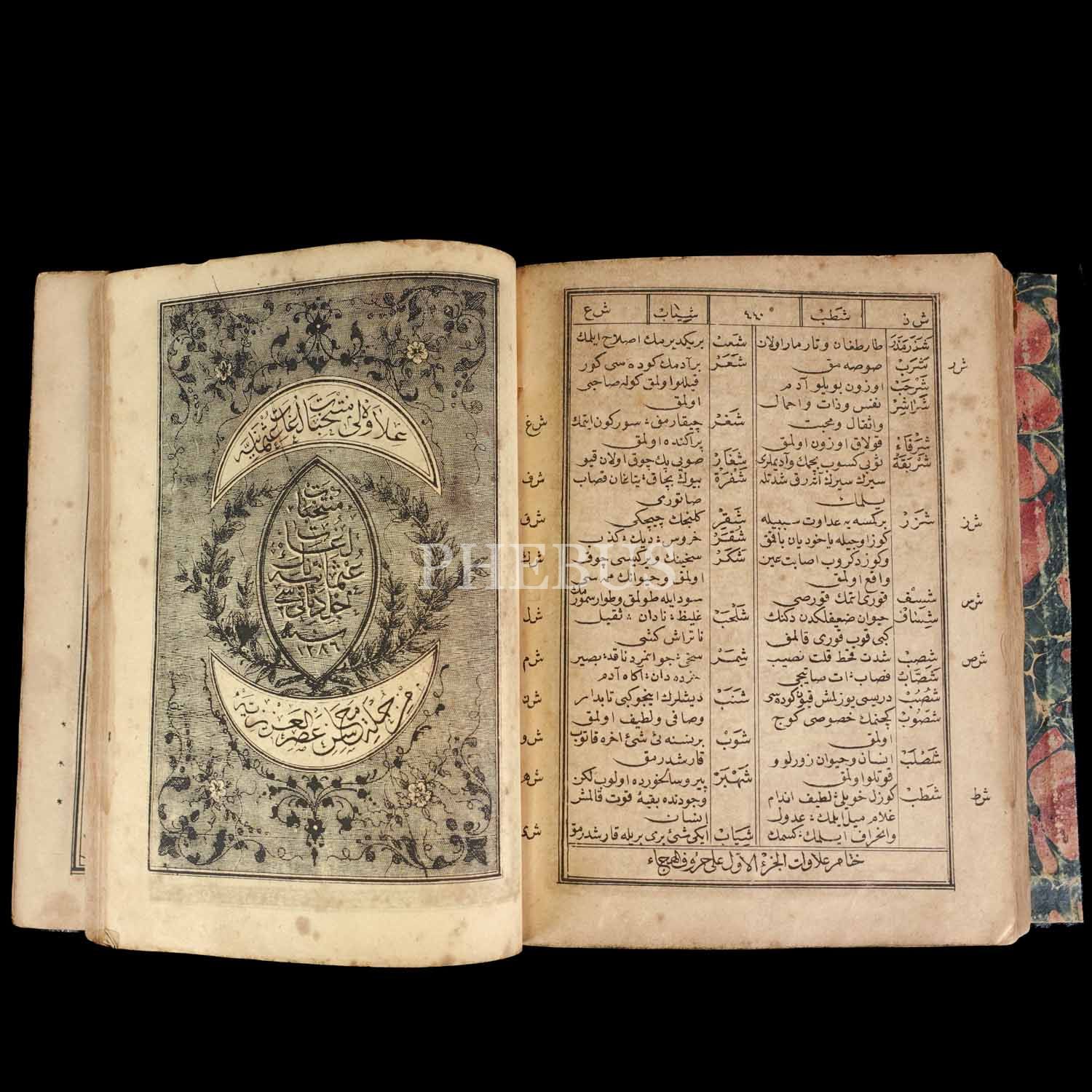 İLAVELİ MÜNTEHEBÂT-I LUGÂT-I OSMANİYE, taşbaskı, iki cilt bir arada takım, 1286, deri sırtlı tuğralı dönem cildinde, cildinden ayrık haliyle, 440+570 sayfa, 17x12 cm...