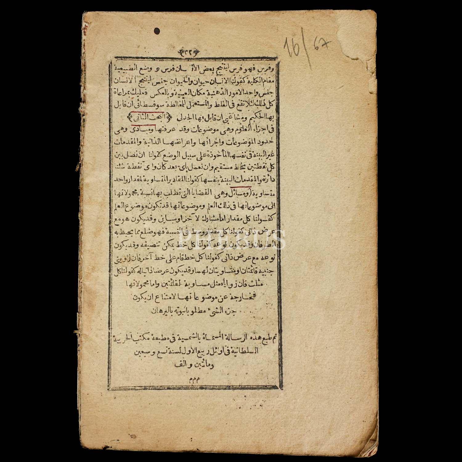 KİTAB-I ŞEMSİYE (İlm-i Mantık), 1279, Mekteb-i Harbiye Matbaası, 32 sayfa, 22x15 cm...