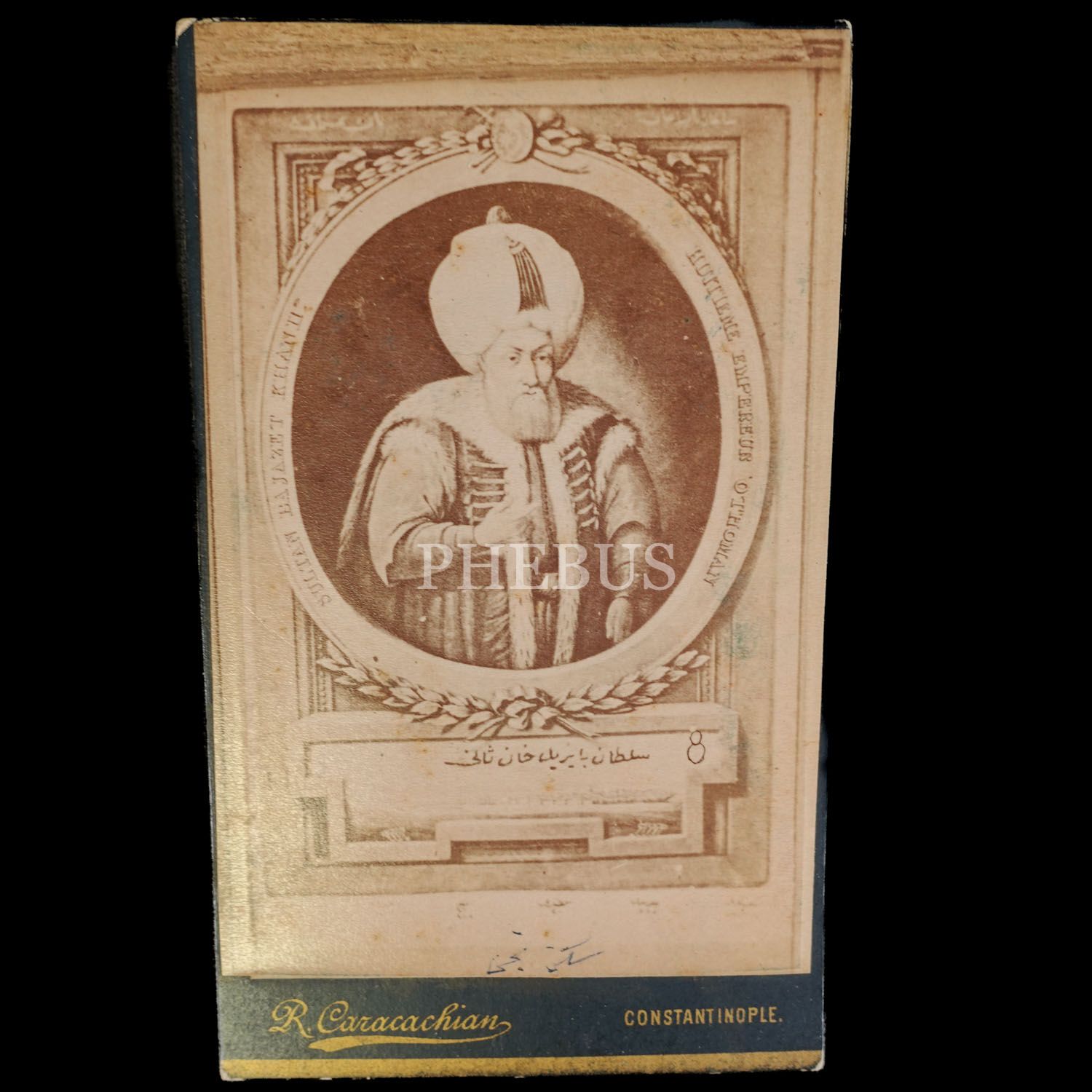 Karakaşyan Fotoğrafhanesi tarafından yayımlanan padişahlar serisinden, CDV (kartvizit) boy Sultan İkinci Bayezid portresi, R. Caracachian, Constantinople, 6,5x11 cm...