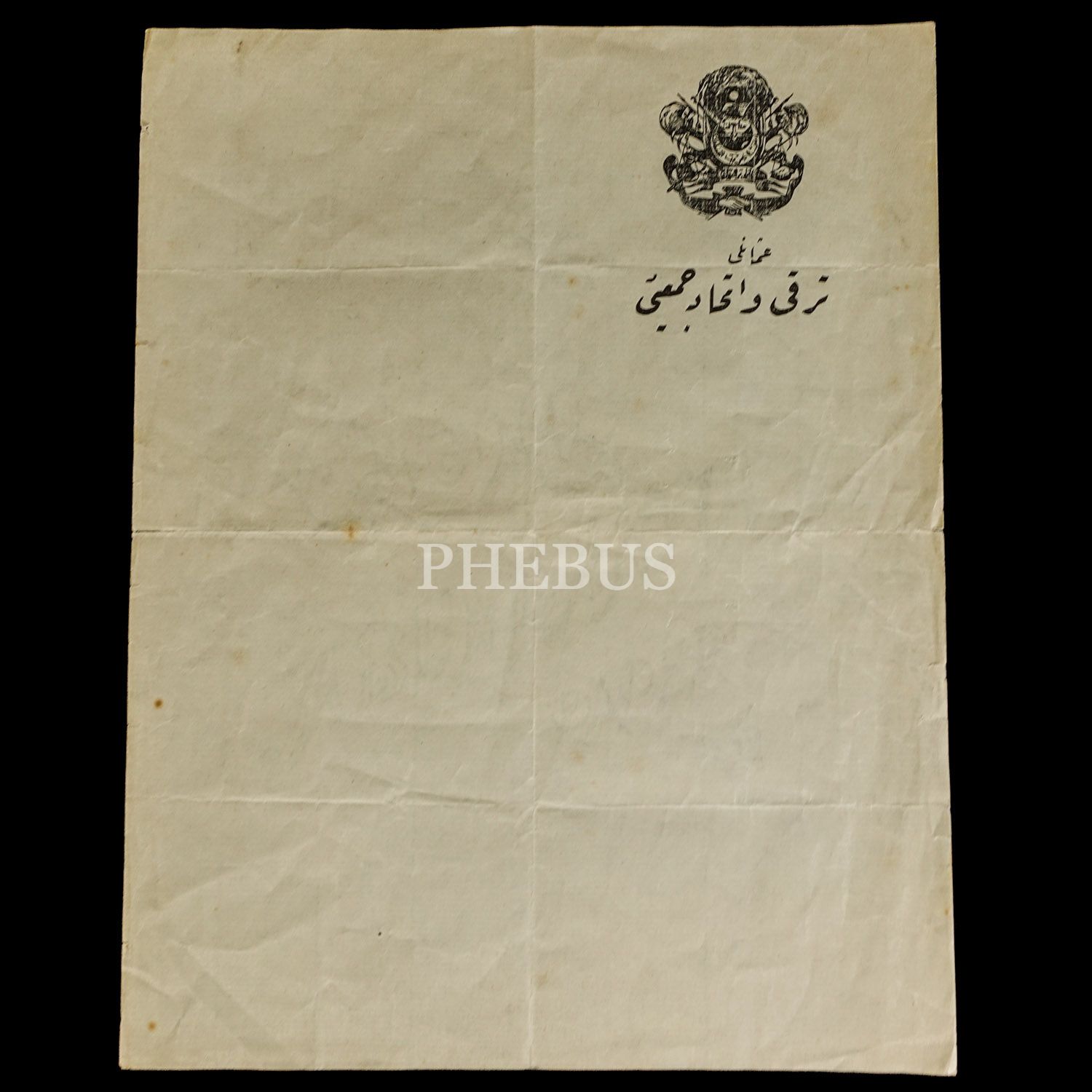 "Osmanlı Terakki ve İttihad Cemiyeti" antetli boş kağıt, 21x27 cm...