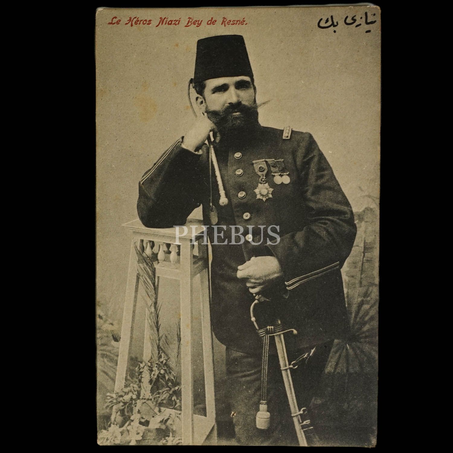 “Vatan Fedaisi” yazılı şapkasıyla Türk-Yunan Savaşı’ndan İkinci Meşrutiyet ve 31 Mart Vakası’na, cephelerde ve çalkantılı siyasi devrimlerde en ön saflarda yer alan Resneli Niyazi Bey, İttihat ve Terakki Cemiyeti’nin önde gelen isimlerinden biridir. 3 Temmuz 1908 tarihinde sayıları 150’yi bulan asker ve gönüllülerle Sultan İkinci Abdülhamid’e karşı dağa çıkarak İkinci Meşrutiyet’in fitilini ateşleyen Resneli Niyazi, dağda bulunduğu esnada karşısına çıkan geyiği yanına almış ve “Gazal-i Hürriyet” adını verdiği geyiği gittiği her yere götürmüştür. 31 Mart Vakası sonrası çok sevdiği Resne kasabasına dönen Resneli Niyazi, Balkan Savaşları’nın patlak vermesiyle yeniden orduya katılmış, savaş sonrasında İstanbul’a dönerken, Avlonya limanında bir kavgayı ayırmak niyetiyle araya girmiş ve şaibeli bir şekilde öldürülmüştür.