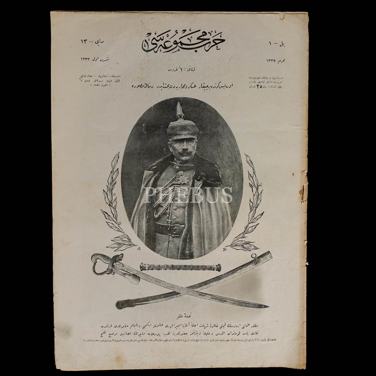 Alman İmparatoru Wilhelm´in fotoğrafına kapağında yer veren HARB MECMUASI´nın Muharrem 1335 tarihli 13. sayısı, 25x35 cm...