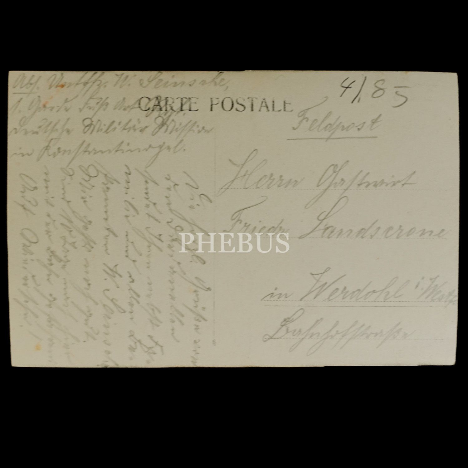 Fotoğraf üzerinde, Almanca not ve Almanca notun eski harflerle yazılmış hali yer almaktadır.