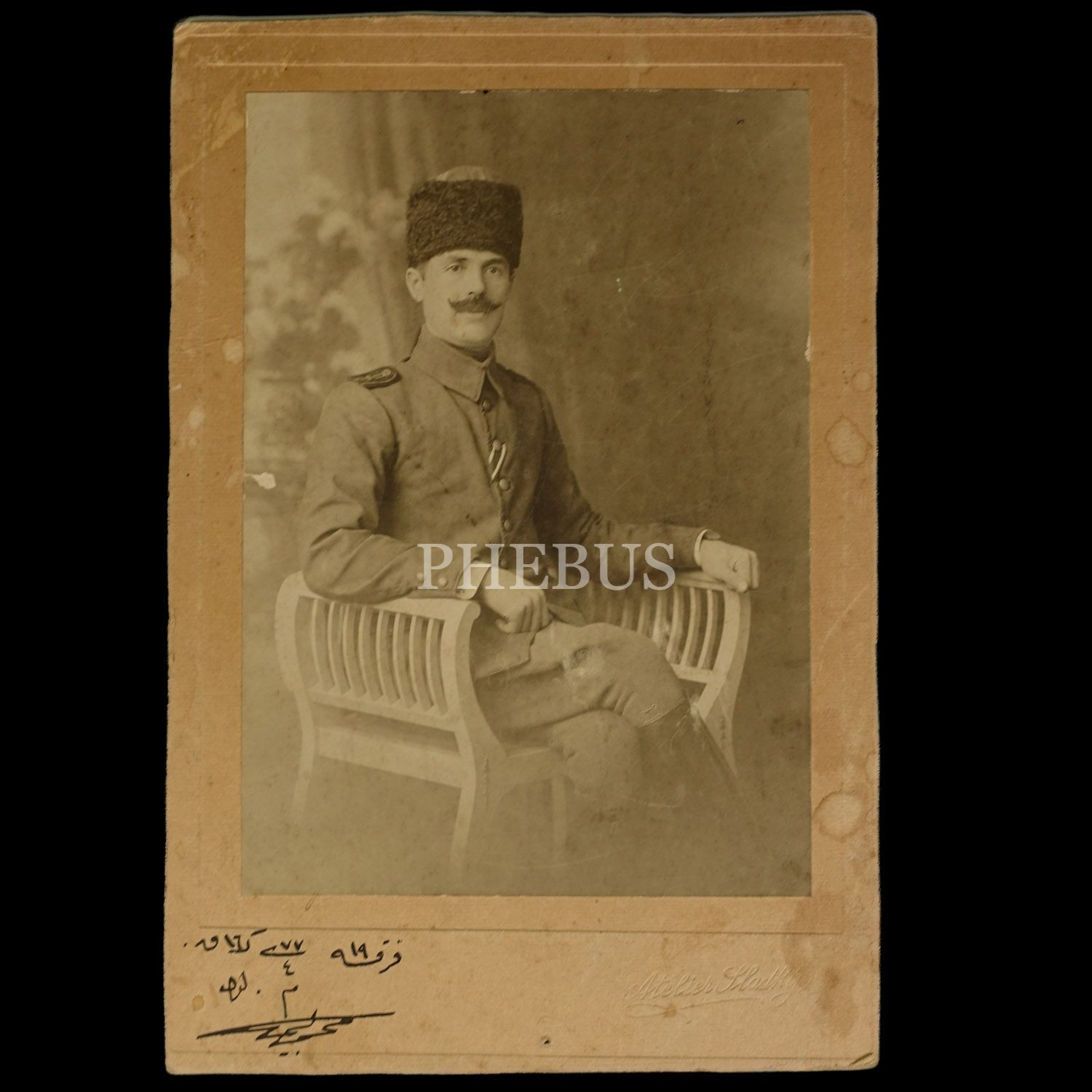Bir Osmanlı subayının, "Atelier Sladalty" fotoğrafhanesinde aldırdığı ithaflı ve imzalı hatıra fotoğrafı, 13x19 cm...