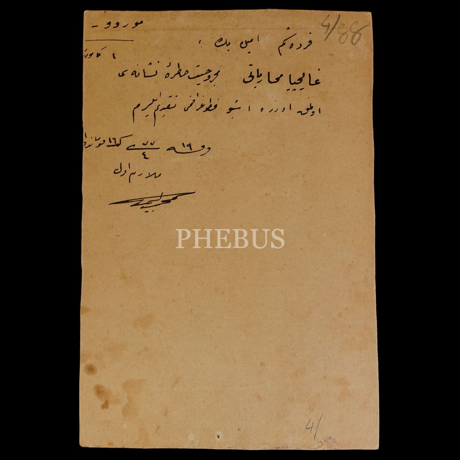 Fotoğrafın arka yüzünde, "Kardeşim Emin Bey; Galiçya Muharebatı mecruhiyet hatıras-i nişanesi olmak üzere işbu fotoğrafımı takdim eylerim." ithafı yer almaktadır.