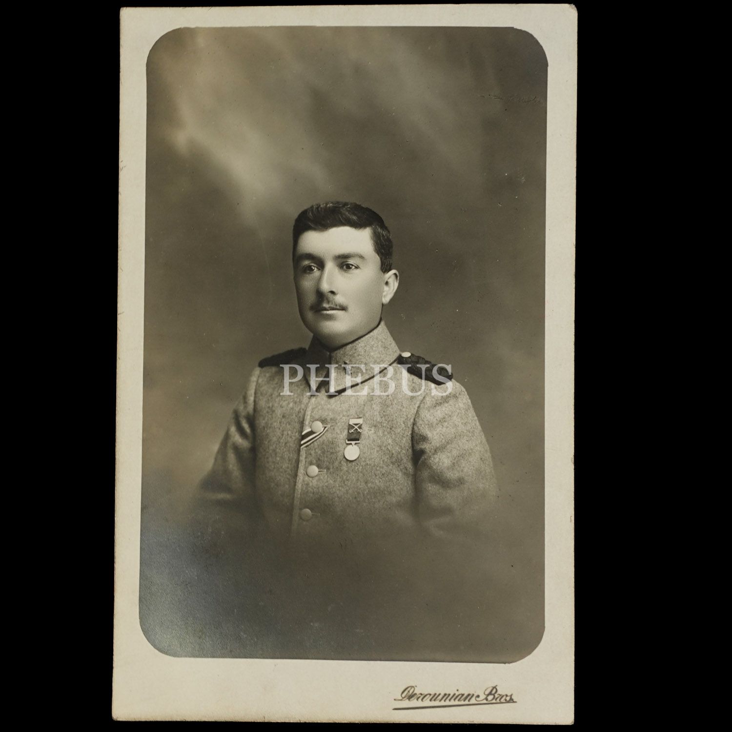 Binbaşı´nın Derounian Bros. fotoğrafhanesinde aldırdığı ithaflı ve imzalı hatıra fotoğrafı, 14x9 cm...