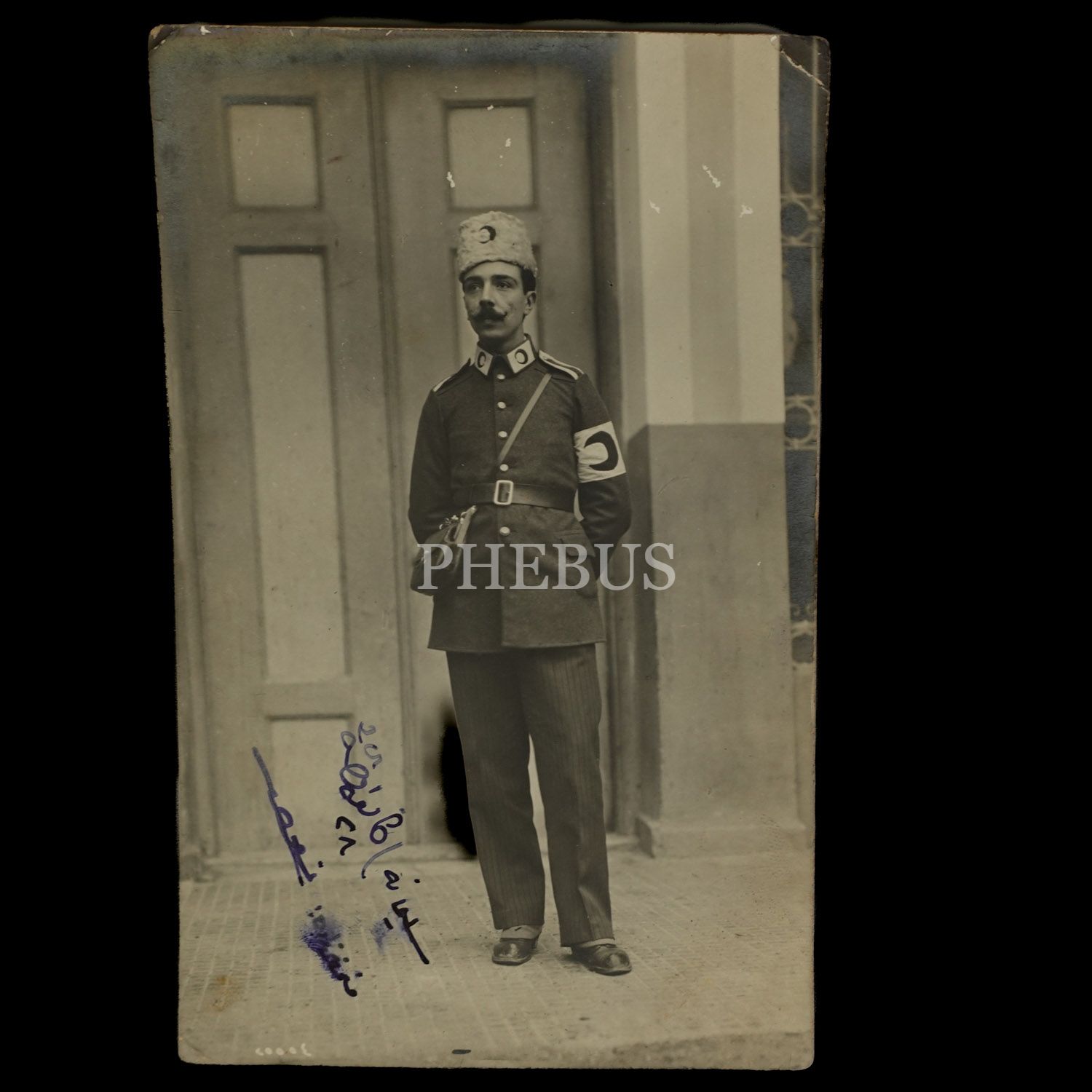 Osmanlı Devleti maliye nazırlarından ve son Meclis-i Ayan Reisi Menemenlizade Rifat Bey´in oğlu; Namık Kemal´in torunu ve Türkiye Cumhuriyeti´nin 1942-1944 tarihleri arasında Dışişleri Bakanı Numan Menemencioğlu´nun, Osmanlı ordusunda sıhhiyeci görevindeyken üniformasıyla aldırmış olduğu imzalı fotoğrafı, 1328, 14x9 cm...