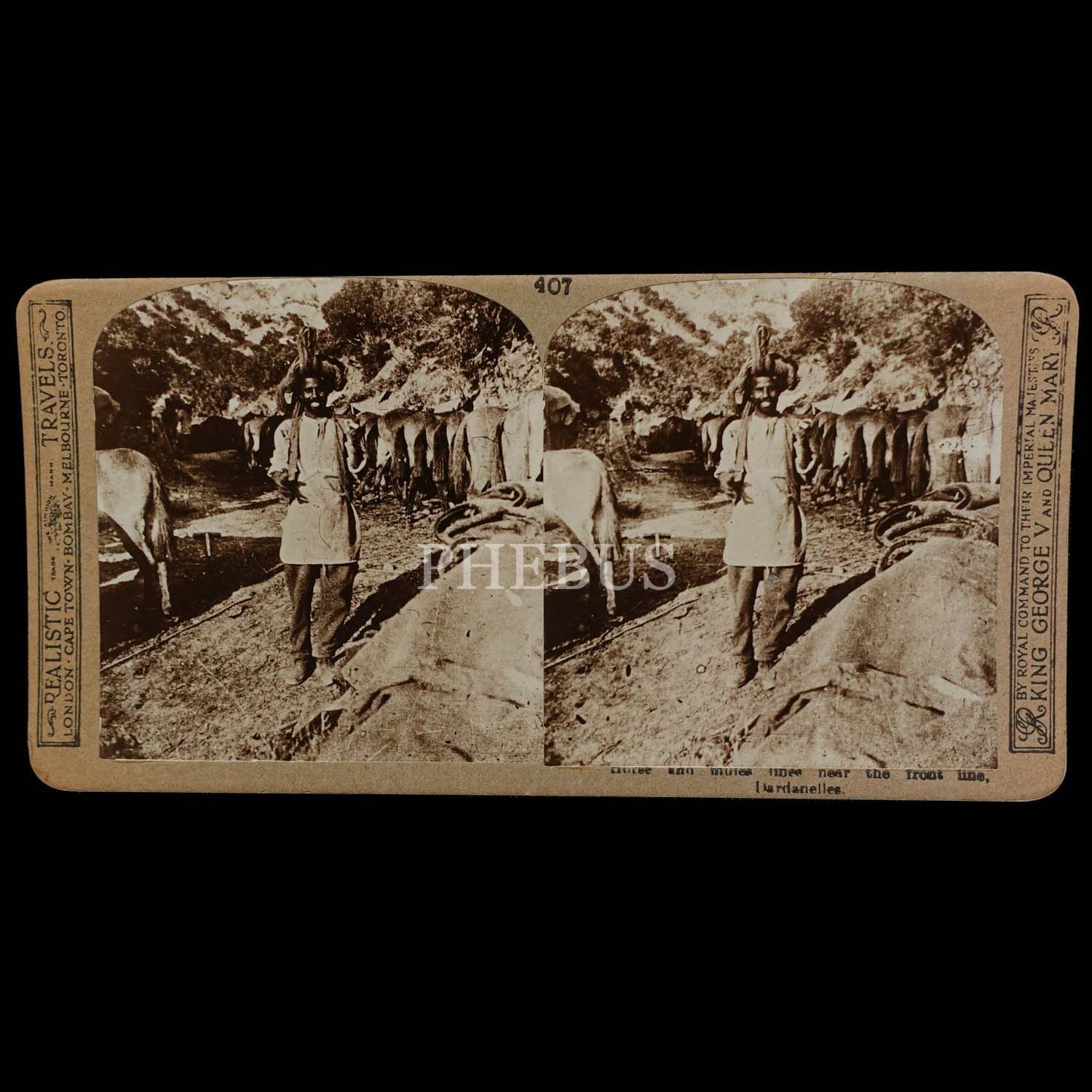 Çanakale Savaşı´nda düşman saflarında görev yapan bir seyis görselli stereoview kart, 18x9 cm...