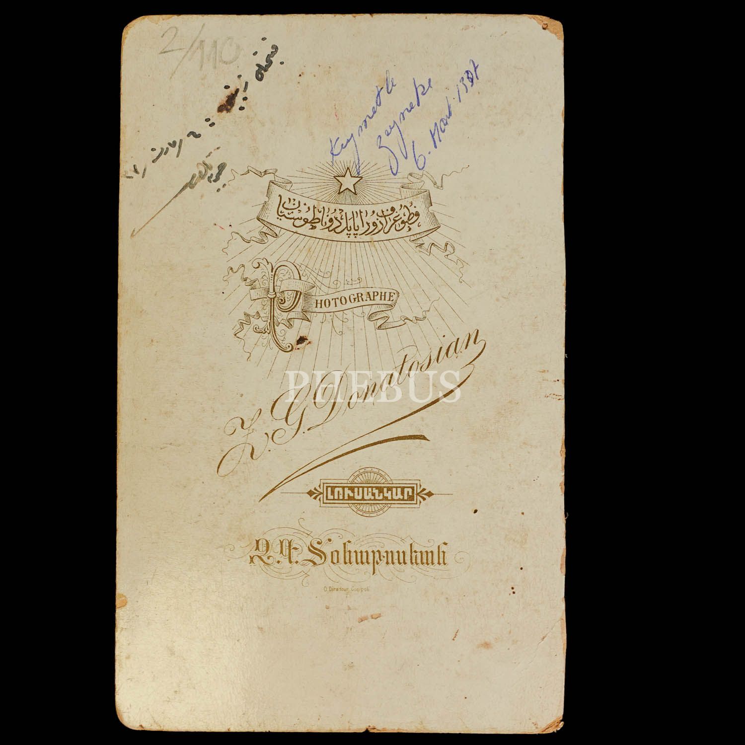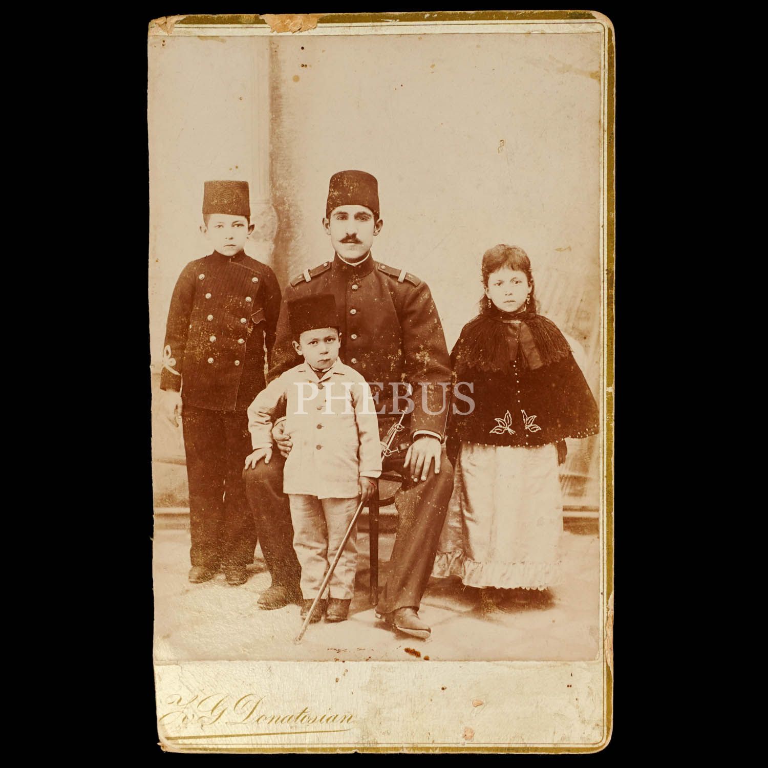 Bir Osmanlı subayı ve çocuklarının Z. G. Donatosian Fotoğrafhanesi´nde aldırdığı ithaflı ve imzalı hatıra fotoğrafı, 11x17 cm...