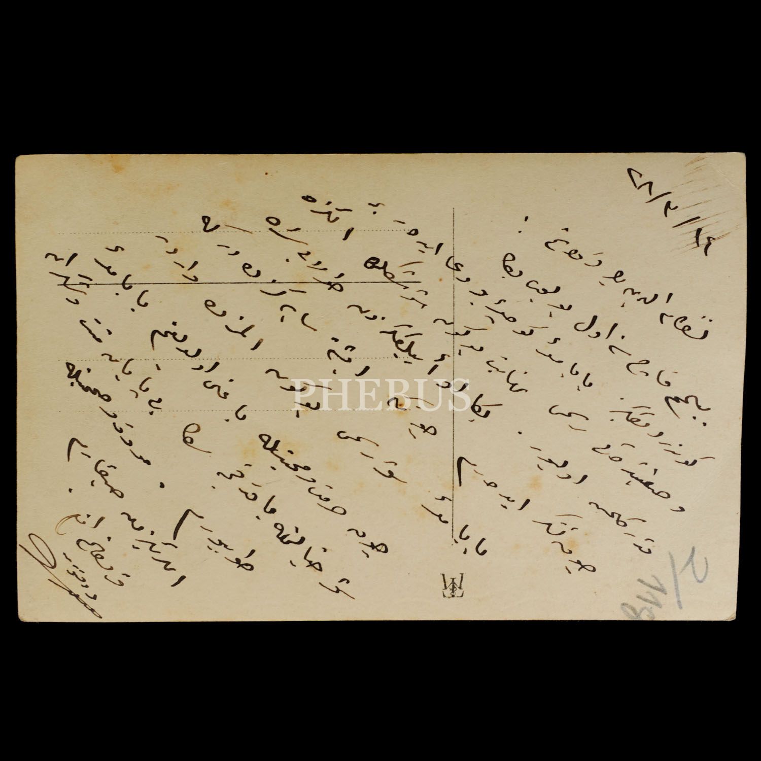 Arka yüzünde Osmanlıca, Bir beyefendinin, babasının bir fotoğrafını bulup kendisine gönderen arkadaşına teşekkür etmek için kaleme aldığı mektup yer almaktadır.