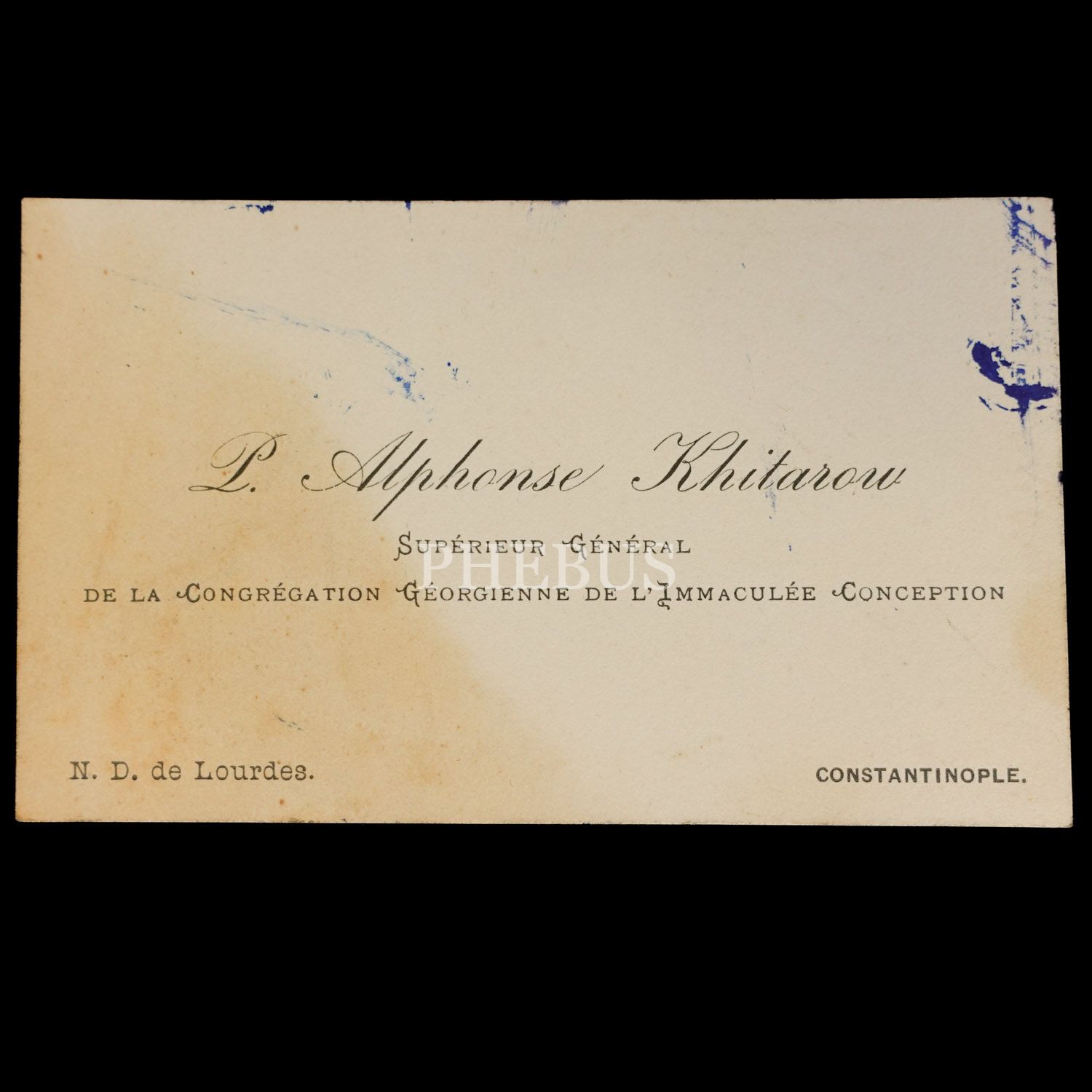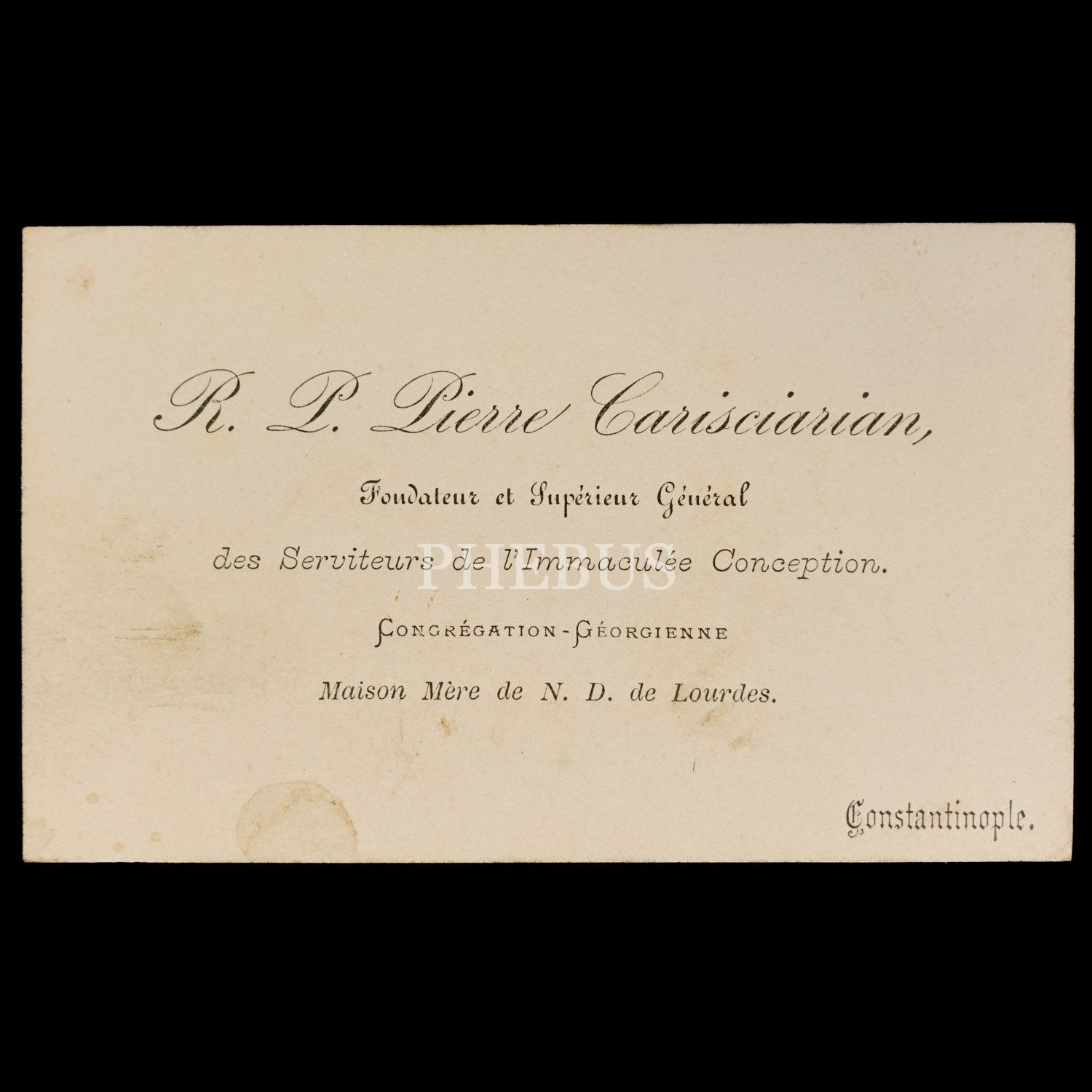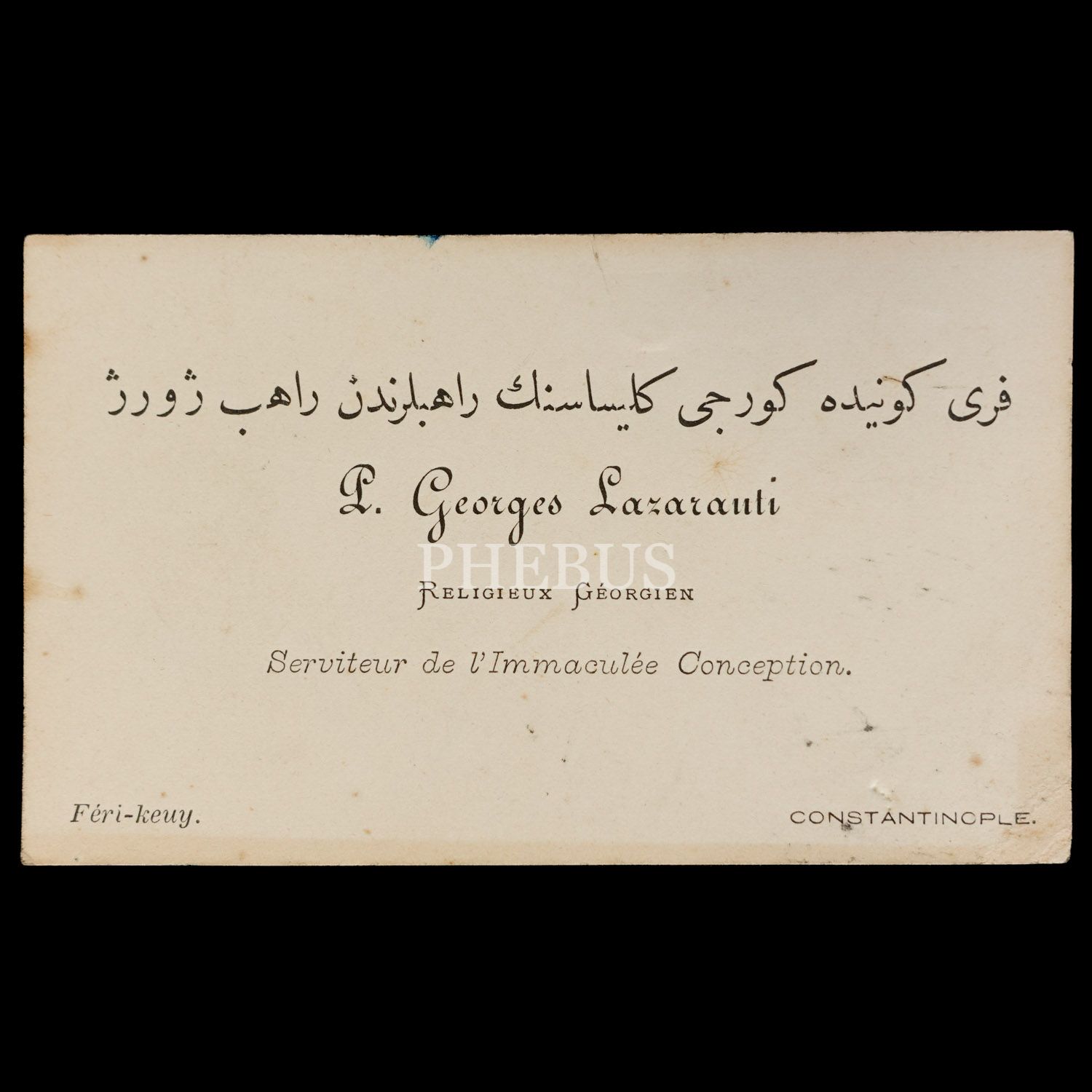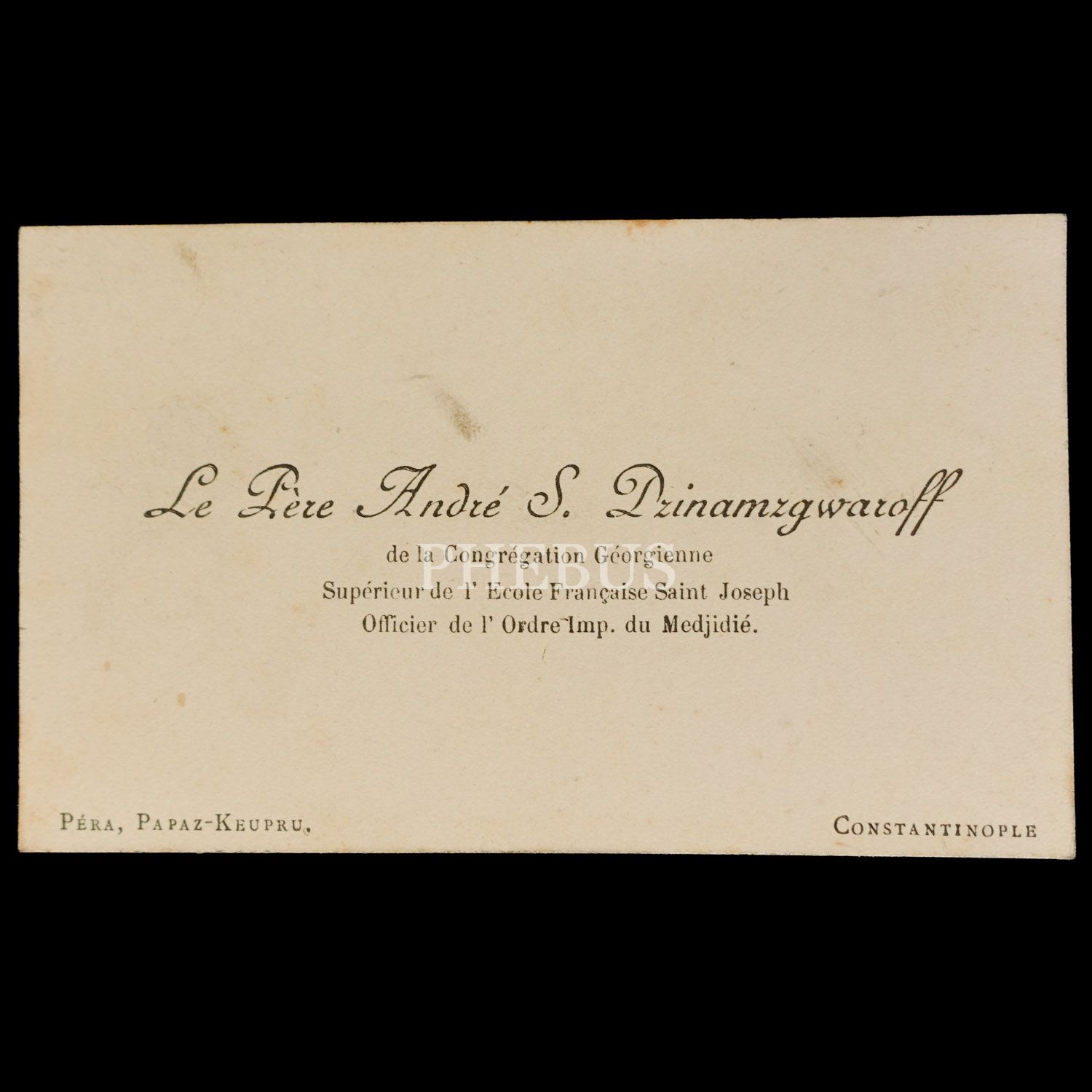 Osmanlı döneminden Feriköy merkezli Gürcü Cemaati´ne mensup beş üst düzey görevliye ait Constantinople adresli kartvizitler, ortalama 10x6 cm...