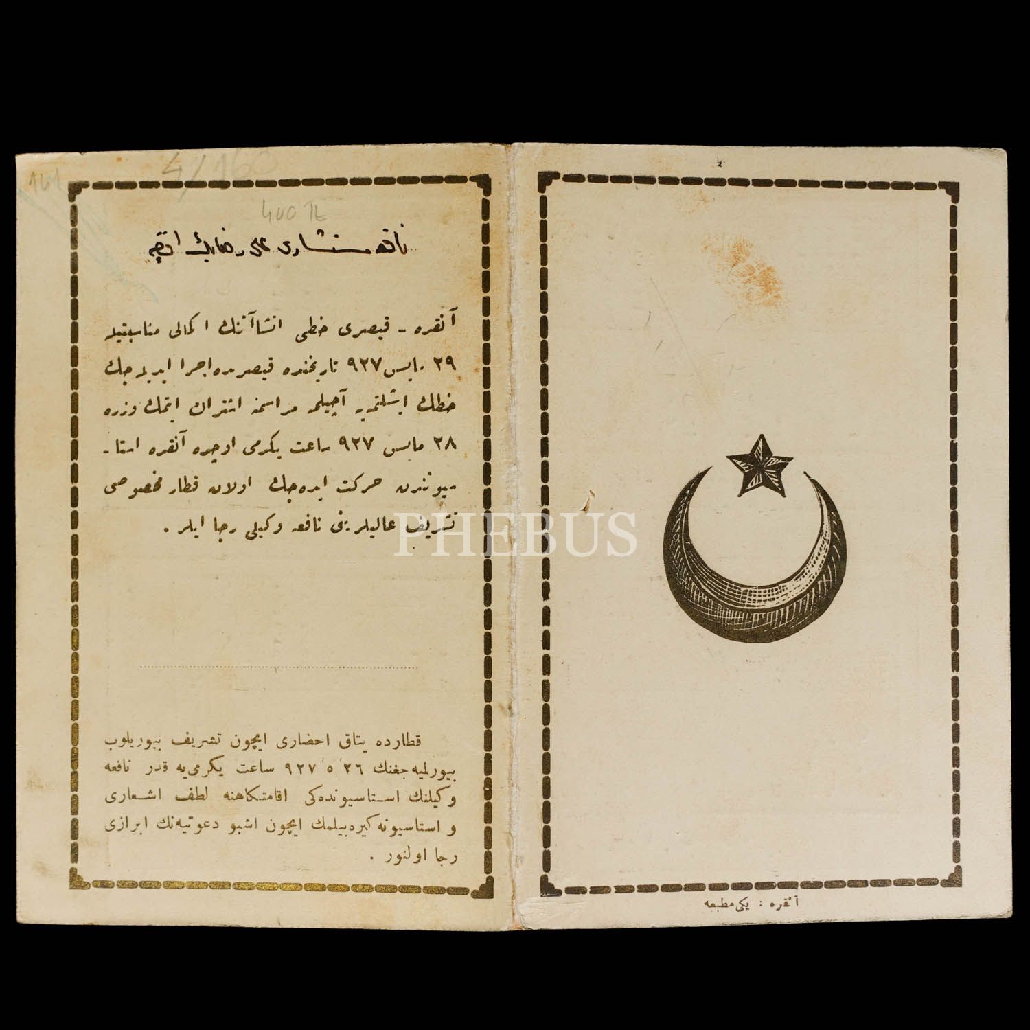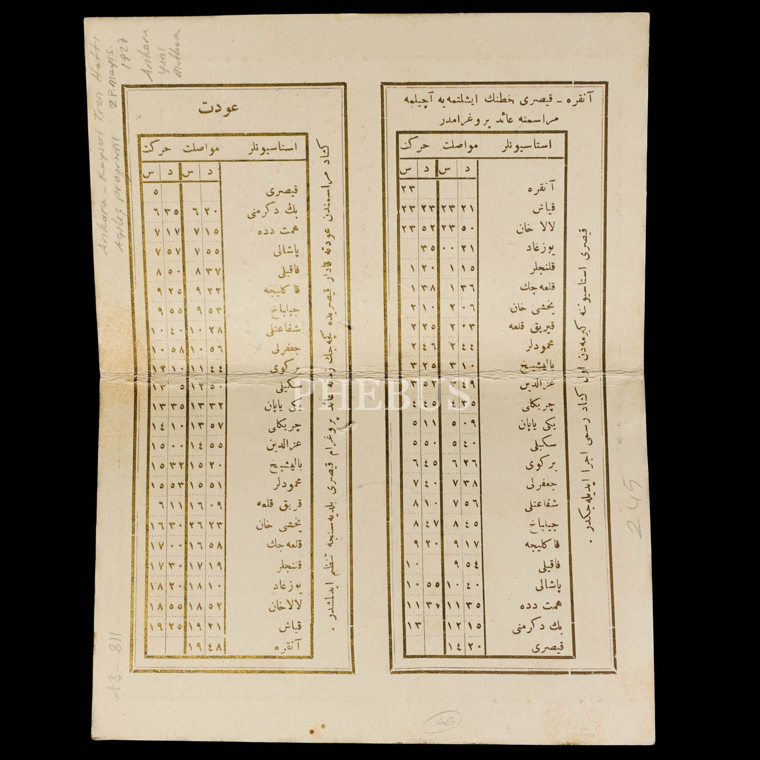 Kayseri - Ankara demiryolu hattının işletmeye açılışı münasebetiyle düzenlenen merasimin davetiyesi ve programı, 20x15 cm...
