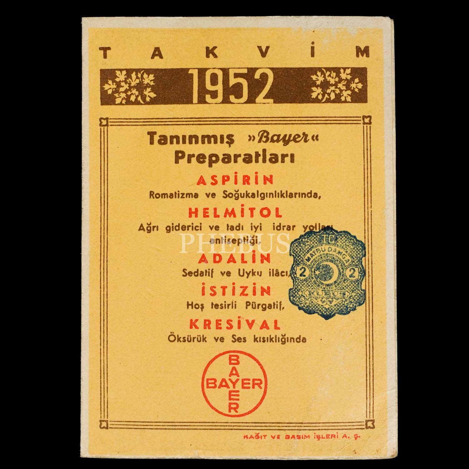 BAYER ilaçları reklamlı 1952 Takvimi, (açık halde) 15x10 cm...