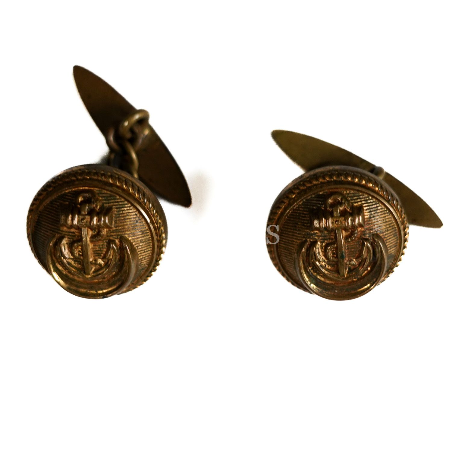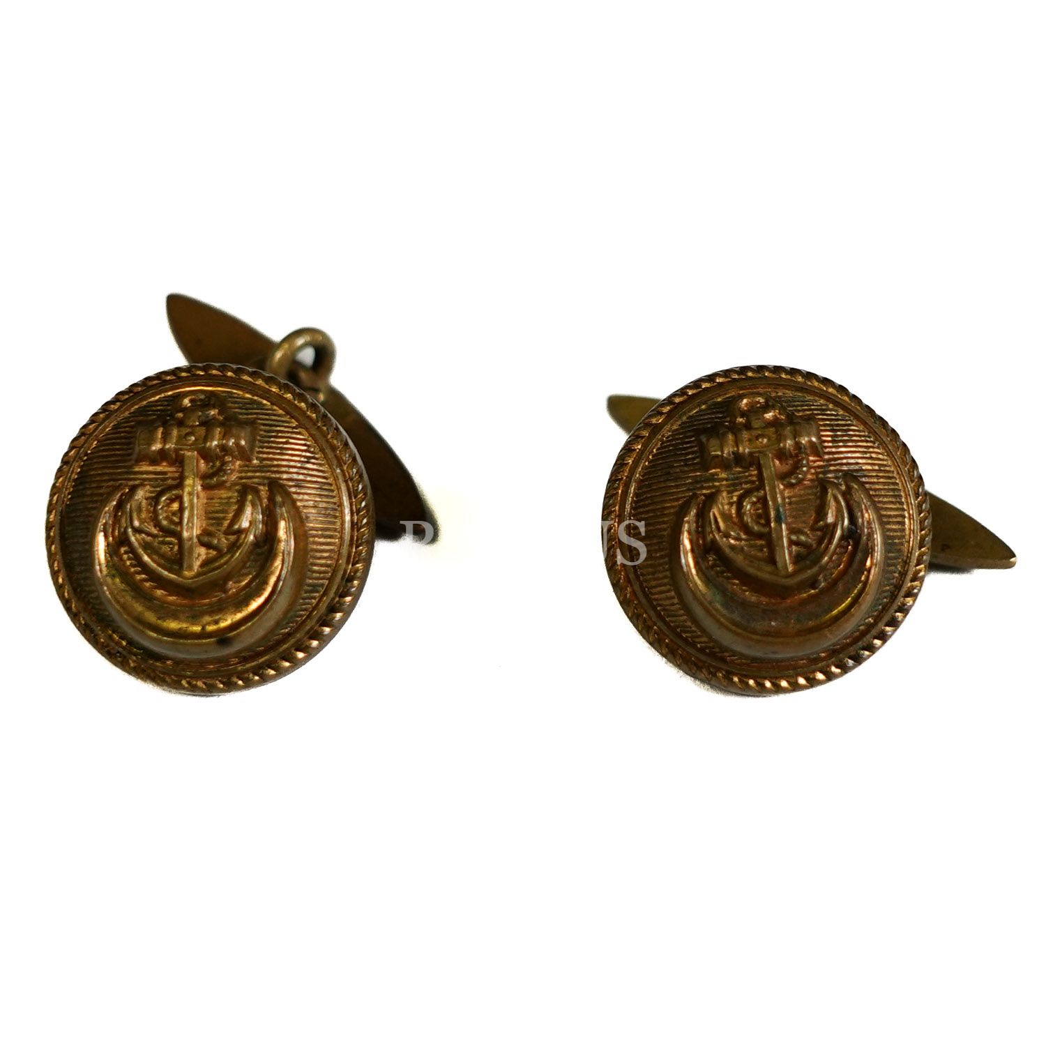 Osmanlı döneminden üretici ibareli (Osmanlıca), çapa görselli pirinç kol düğmesi, çap 1 cm...