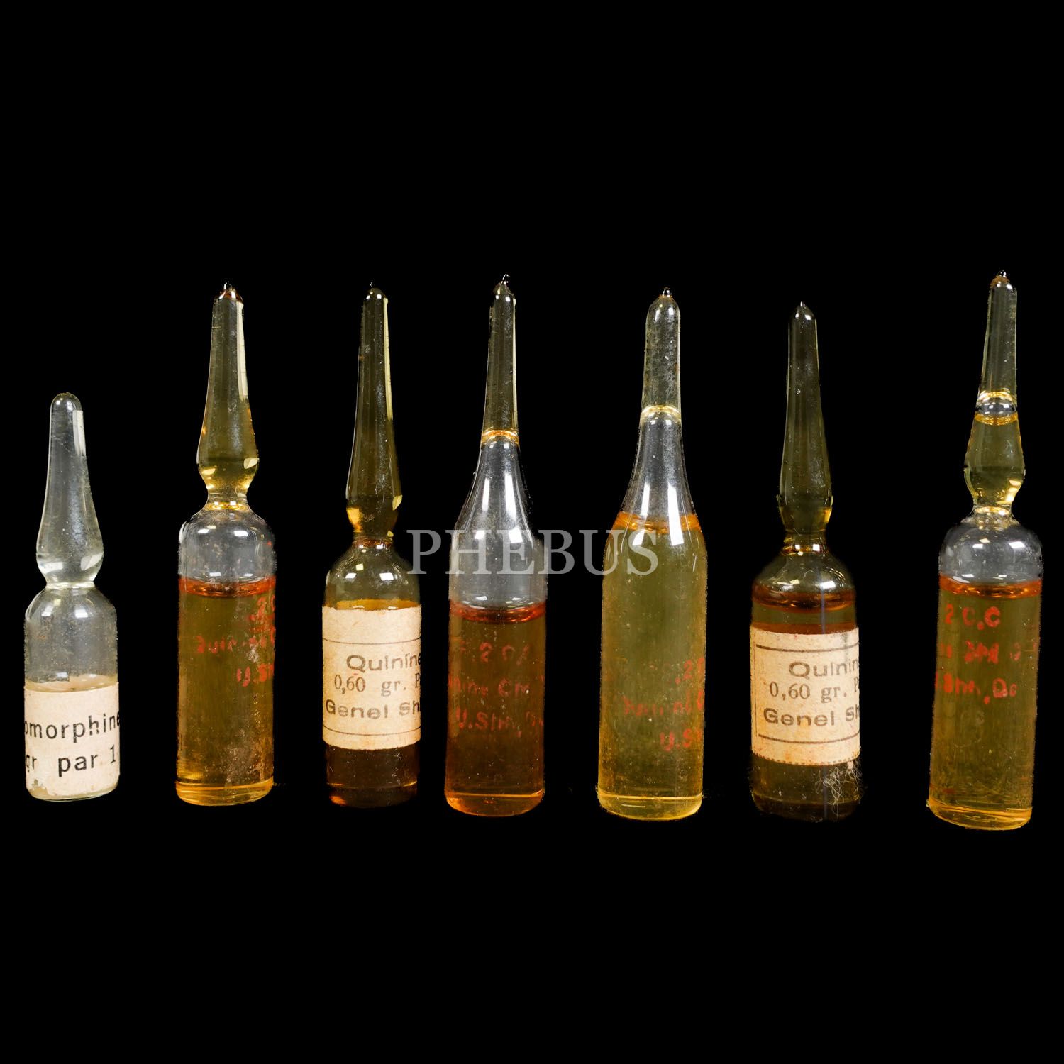 El yapımı şişelerde "Genel Shh. Deposu" ibareli 7 adet dolu ampul-serum, 5 cm...
