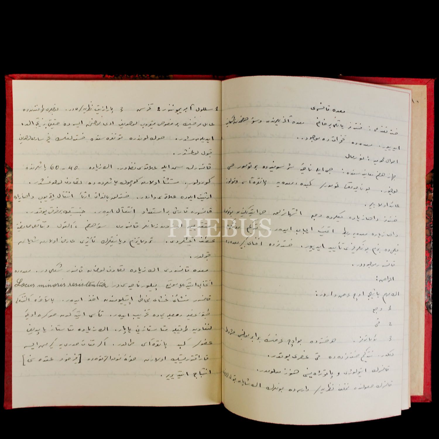 Bir tıp öğrencisinin çeşitli hastalıklar ve tedavileri hakkında kaleme aldığı defteri, 14x20 cm...