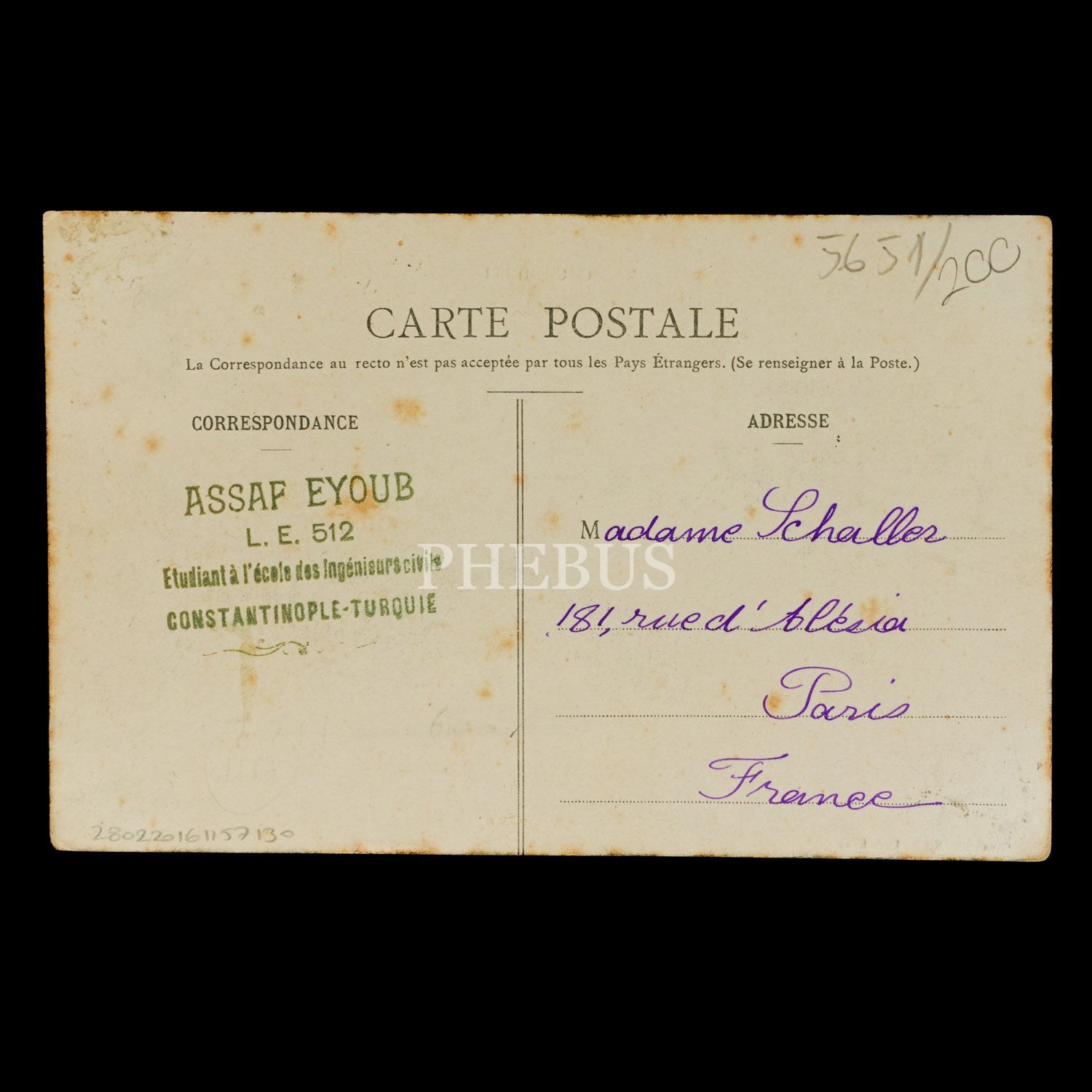 Arka yüzü "Assaf Eyoub - Constantinople" kaşeli. Postadan geçmiş.