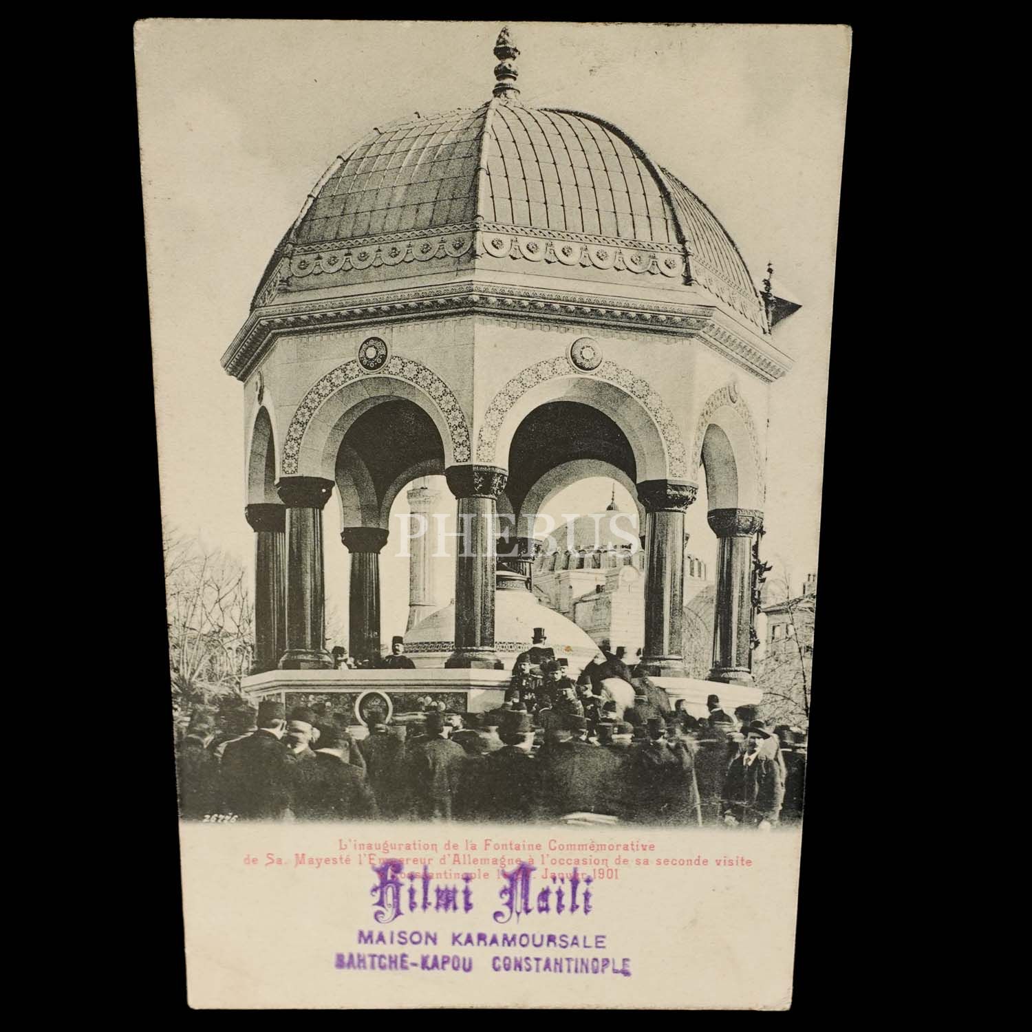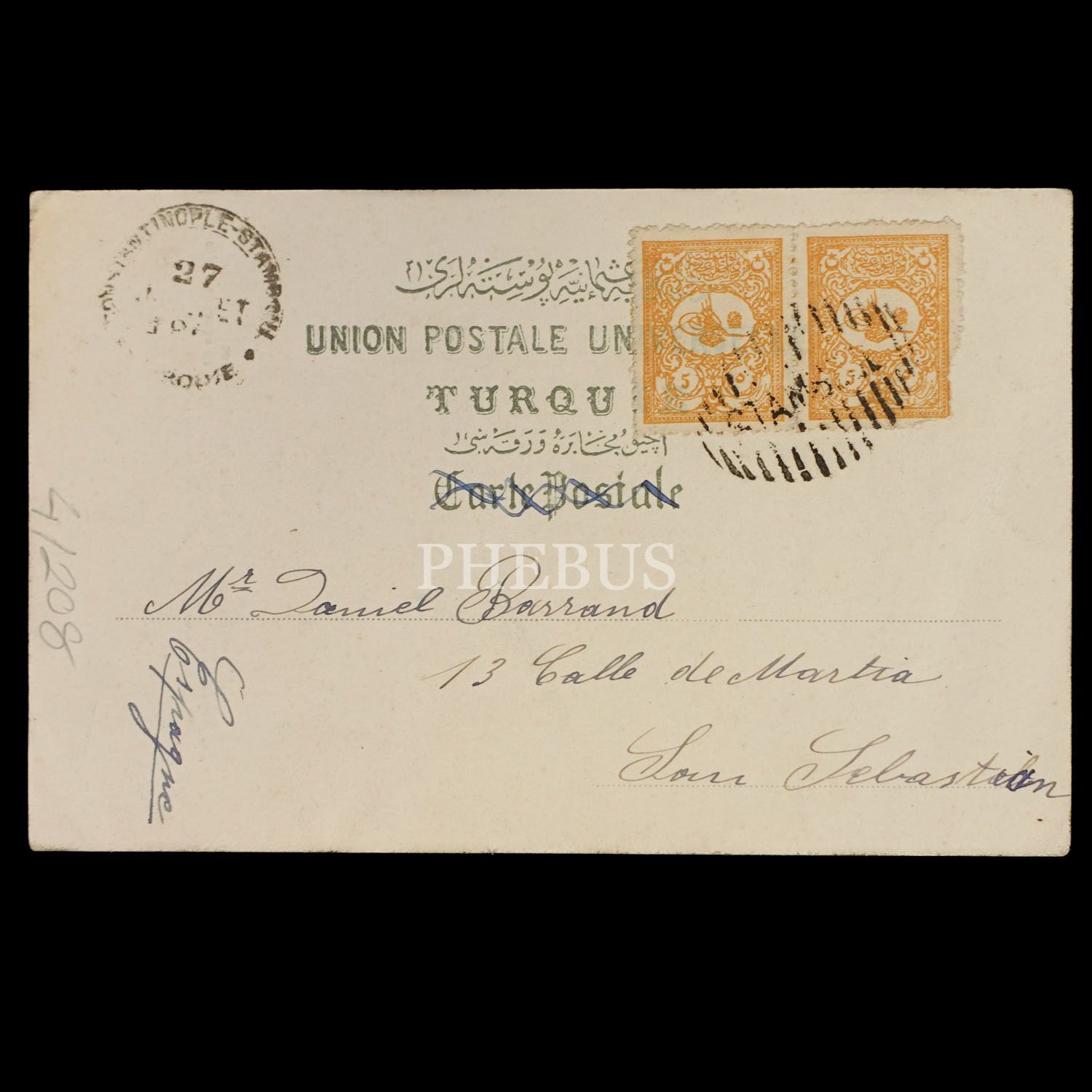 Ön yüzü "Hilmi Naili - Maison Karamoursale - Bahtche-Kapou, Constantinople" kaşeli. Postadan geçmiş.