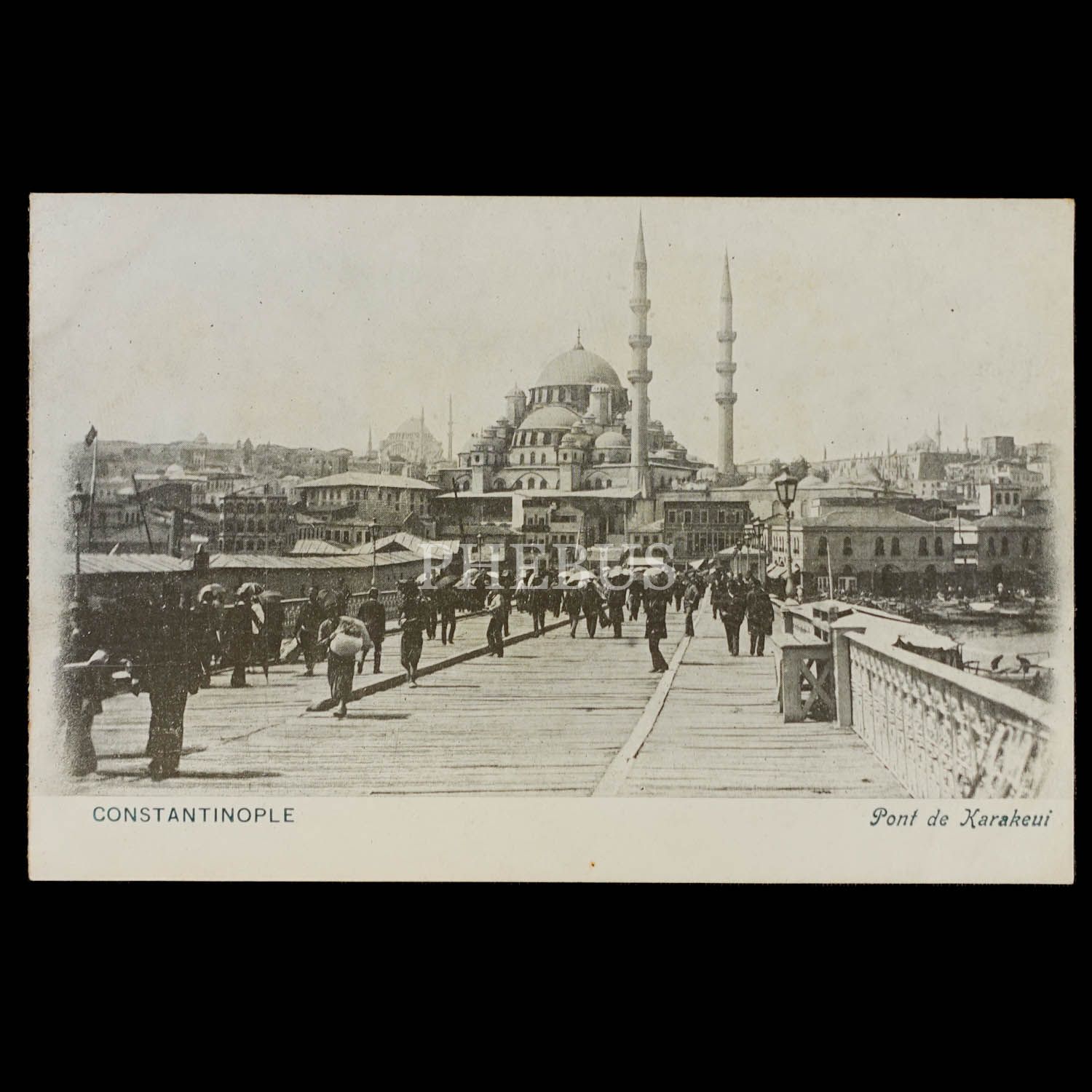 Galata Köprüsü üzerinden Eminönü´ne bakış, "Pont de Karakeui - Constantinople", arka yüzü Regie (Reji) sigaraları reklamlı, 14x9 cm...
