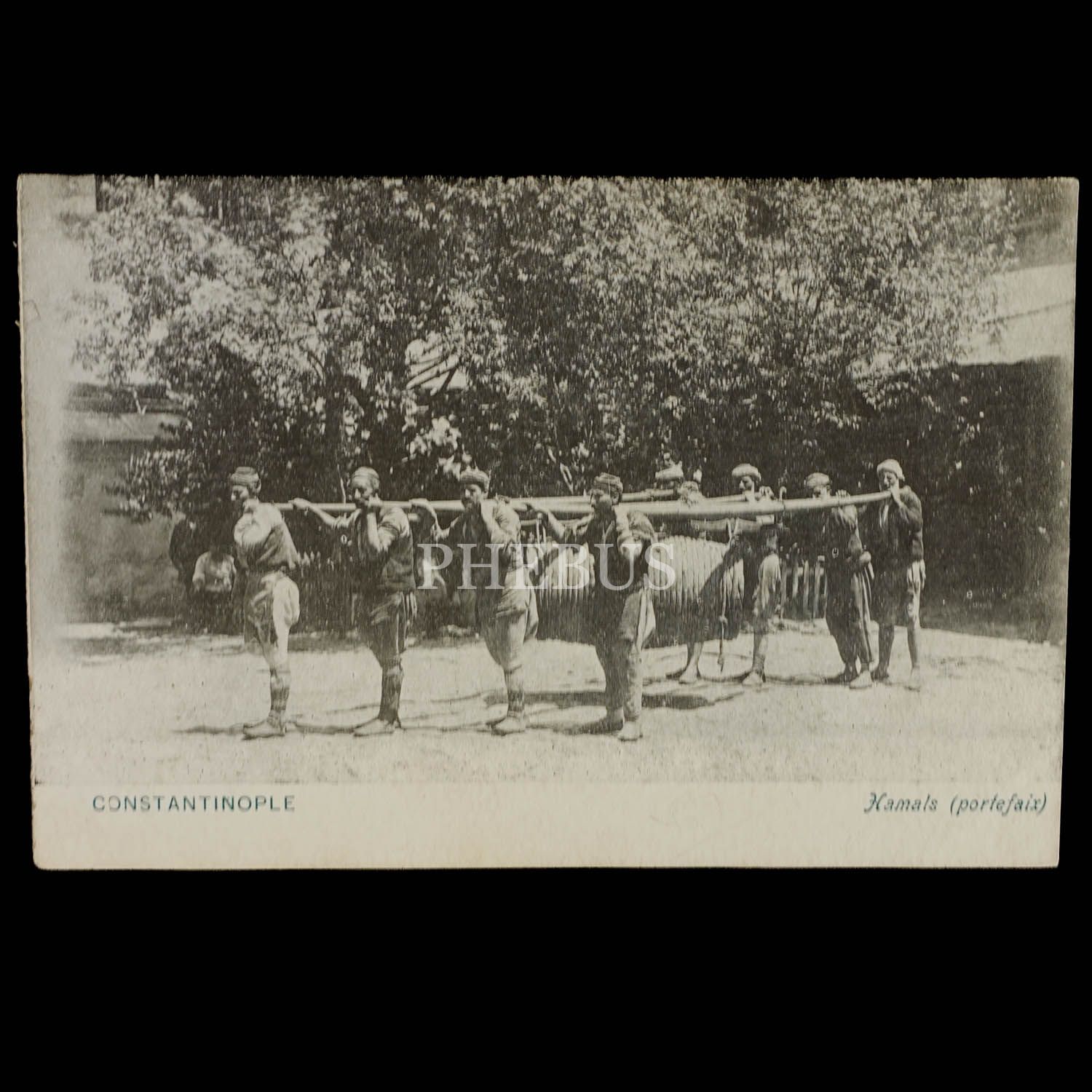 Sırık hamalları, "Hamals (portefaix) - Constantinople", arka yüzü Regie (Reji) sigaraları reklamlı, 14x9 cm...